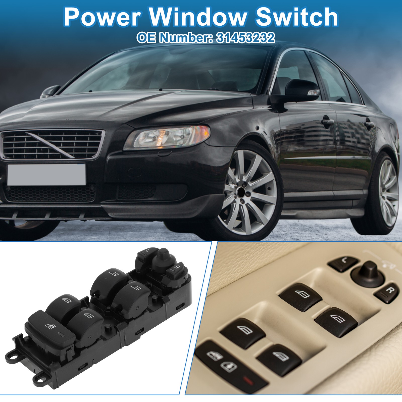 Document Fit for:for Volvo S80 2007 2008 2009 2010 2011 2012 2013 2014 2015for Volvo S80 2.0l 4 cylinder Turbo 2016for Volvo V70 2008 2009for Volvo V70 3.2l 6 cylinder 2010for Volvo XC70 2009 2010 2011 2012 2013 2014 2015 2016for Volvo XC70 3.2l 6 cylinder 2008OE Number:31453232Product Highlights:Made of plastic and metal, durable for your car.It has a good fit, and would not break or crack easily during use.After 50,000 tests, the product has no corrosion or rust, the switch performance is good, the button are smooth and there is no sticking.There is no obvious fading when it touches water, the keys do not affect the use, and the identification symbols are not damaged.The appearance of the product is not damaged after falling.This is a non-OEM product, accessory only!Product Information:Number of Pins: 3Placement on Vehicle: Front Left Driver SideButton Function: Window Lock/Unlock, Window Control, Mirror Adjust ControlColor: BlackMade of:Material: Plastic, MetalContent:Package Includes 1 Pc Power Window SwitchTip:Please make sure that the OE number you need with our consistent before you order it.Make sure this is the correct application type of power window switch before placing an order.If the pins do not match, this window switch will not fit your vehicle.Please pay attention to the mating plug before installing the switch, and clean the excess dust. Front Left Driver Side Window Control Switch for Volvo S80 V70 XC70 No.31453232 Fit for : for Volvo S80 2007 2008 2009 2010 2011 2012 2013 2014 2015 for Volvo S80 2.0l 4 cylinder Turbo 2016 for Volvo V70 2008 2009 for Volvo V70 3.2l 6 cylinder 2010 for Volvo XC70 2009 2010 2011 2012 2013 2014 2015 2016 for Volvo XC70 3.2l 6 cylinder 2008 OE Number: 31453232 Product Highlights: Made of plastic and metal, durable for your car. It has a good fit, and would not break or crack easily during use. After 50,000 tests, the product has no corrosion or rust, the switch performance is good, the button are smooth and there is no sticking. There is no obvious fading when it touches water, the keys do not affect the use, and the identification symbols are not damaged. The appearance of the product is not damaged after falling. This is a non-OEM product, accessory only! Product Information : Number of Pins: 3 Placement on Vehicle: Front Left Driver Side Button Function: Window Lock/Unlock, Window Control, Mirror Adjust Control Color: Black Made of : Material: Plastic, Metal Content : Package Includes 1 Pc Power Window Switch Tip: Please make sure that the OE number you need with our consistent before you order it. Make sure this is the correct application type of power window switch before placing an order. If the pins do not match, this window switch will not fit your vehicle. Please pay attention to the mating plug before installing the switch, and clean the excess dust. ITEM SPECIFICS Brand switchpart To Control Window Placement on Vehicle Door Type Push Switch Features Durable Manufacturer Part Number 31453232 OE/OEM Part Number 31453232 Color Black Universal Fitment No Manufacturer Warranty 3 Months Product Name Power Window Switch Net Weight 135g Shell Color Black Material Plastic,Metal Package Content 1 Pc Car Power Window Switch Note This is not oem product,accessory only. NOTICE If you have any questions, please feel free to contact our customer service. Our response will be faster than eBay! Our Handling Time: within 24 hours on weekdays eBay Handling Time: 72 hours ABOUT US SHIPPING POLICY PAYMENT RETURN CONTACT US We are committed to providing professional, safe and effective personal care products. We strive to provide customers loved products at the competitive price. We work with suppliers to discover practical, easy-to-use personal care products. Our store not only offers quality products at the competitive price, but also has professional customer service, offers you comfortable shopping experience. Please don't forget to follow us on eBay. We will continue to update and provide more and more practical personal care products. switchpart thank you for your business! We work hard to safely and securely ship your order in the least amount of time. Storewide free shipping in United States. All our items will be shipped to buyer's address, please confirm your address on eBay before you purchase. Taxes and other charges are included in the item price or shipping charges. Buyers are responsible for these charges. We accept payment methods show in payment details. Payment must be received within 7 days of auction closing. According to eBay guidelines, all unpaid purchases case will be opened automatically. If you need to specify the color or other information for the items you purchased, please Click here to contact us directly with item # and your eBay ID. We offer a 30 day return policy. This is under the following conditions: The item must be unused and in a resalable condition otherwise are not eligible for a refund. All items returned by post are returned at your expense, we cannot be held responsible for this. Please use a traceable service. Generally we answer emails within 24 hours (excluding weekends & holidays). Questions or comments? We welcome your inquiry! Please feel free to contact us directly. Description Policy Front Left Driver Side Window Control Switch for Volvo S80 V70 XC70 No.31453232 Fit for : for Volvo S80 2007 2008 2009 2010 2011 2012 2013 2014 2015 for Volvo S80 2.0l 4 cylinder Turbo 2016 for Volvo V70 2008 2009 for Volvo V70 3.2l 6 cylinder 2010 for Volvo XC70 2009 2010 2011 2012 2013 2014 2015 2016 for Volvo XC70 3.2l 6 cylinder 2008 OE Number: 31453232 Product Highlights: Made of plastic and metal, durable for your car. It has a good fit, and would not break or crack easily during use. After 50,000 tests, the product has no corrosion or rust, the switch performance is good, the button are smooth and there is no sticking. There is no obvious fading when it touches water, the keys do not affect the use, and the ident