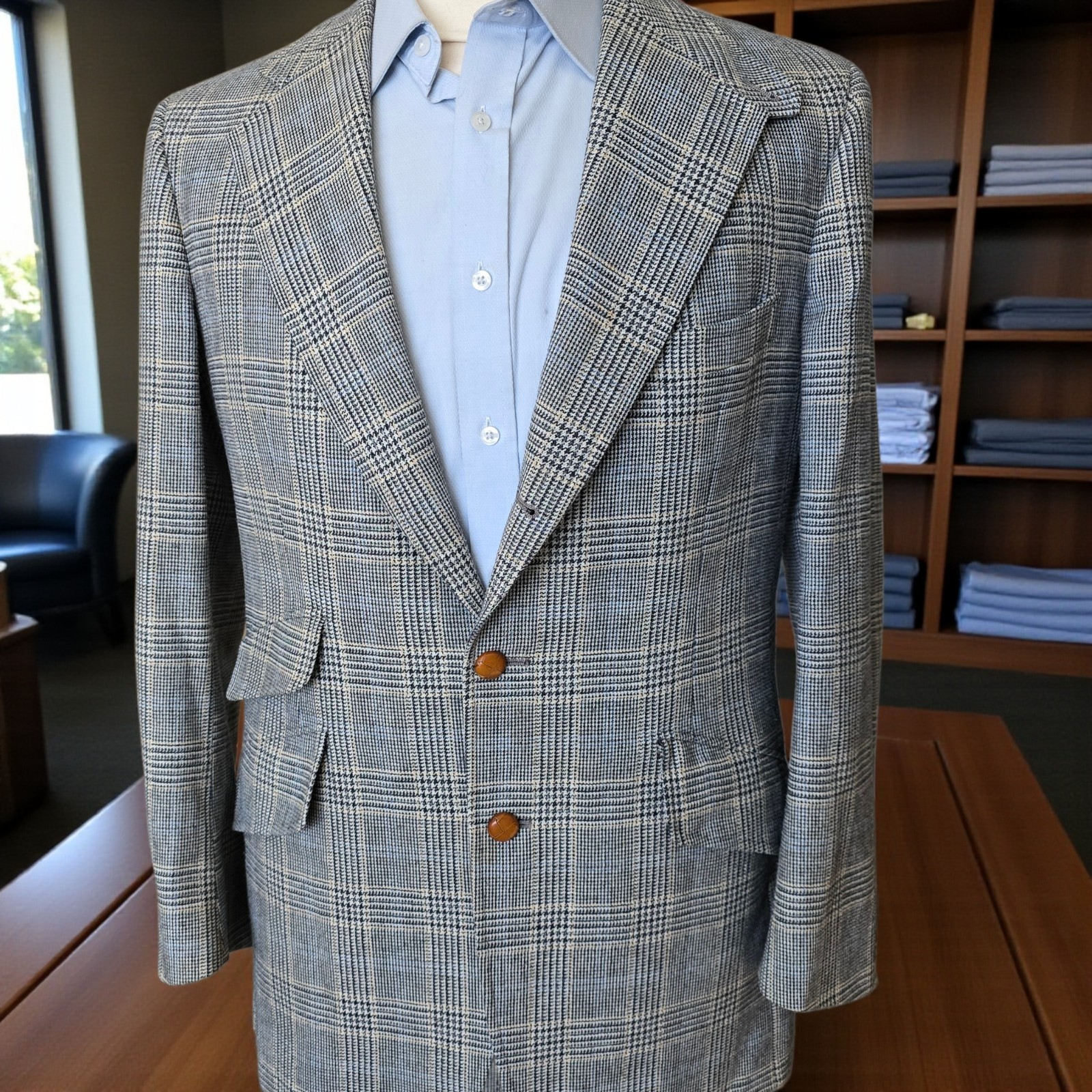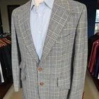 Size: 40L USA with 25-inch arm length and a jacket length of 31.5 inches. For complete measurements, see photos #2 To see exactly how we measured, see the last series of photos. 1 inch of extra fabric to extend the arm length Condition: good. No flaws to the fabric were found. No stains. No snags. No smells. No holes. The liner is in fair condition. Minor Discoloration to the armpits as well as a small repair Vintage late 1960s, Storm collar, three roll two, light shoulder pads, soft woven tweed, ticket pocket, single vent, heavy weight Return policy: We offer free shipping and no returns. We can not afford to offer both in the highest return category on eBay. It becomes very expensive to mail out items for free for people to try on if they are not confident in checking the measurements in picture #2. If you prefer to have the ability to return the item and pay $12.95 shipping, please send us a message, and we can change the listing format to offer returns. The $12.95 shipping cost would break us out even in the case you needed to return the item. We ship the next business day after the payment is made.
