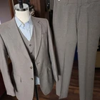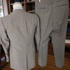 Size: 40L USA with 25-inch arm length and a jacket length of 32 inches. Pants: 33x32 drop 7 For complete measurements, see photos #2, #3, and #4 To see exactly how we measured, see the last series of photos. Extra fabric for adjustments: Waist: 3 inches Inseam: 2.5 inches Arms: 1 inch Color: brown with orange and blue glen plaid Condition: excellent vintage condition. No holes. No snags. No smells. No major stains found. 1970s tailored, light shoulder pads, single vent, flare leg Return policy: We offer free shipping and no returns. We can not afford to offer both in the highest return category on eBay. It becomes very expensive to mail out items for free for people to try on if they are not confident in checking the measurements in picture #2. If you prefer to have the ability to return the item and pay $12.95 shipping, please send us a message, and we can change the listing format to offer returns. The $12.95 shipping cost would break us out even in the case you needed to return the item. We ship the next business day after the payment is made