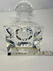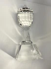 Vintage 24% lead Cut Crystal Iridescent pillar style trophy cup award paperweight Weight 2lbs 1oz - 9 inches tall - 4x4” base Etching in the base is a Bear/Polar Bear figure and the text “LCCC” referencing *Lorain County Community College* (located in Ohio) NOTE* Has two (2) very tiny chips / one is on edge of base. The second is the very tip of the finial * see photos Late 90s~ early 2Ks By Anson - No back stamp - No Box Vintage Estate display Thank you