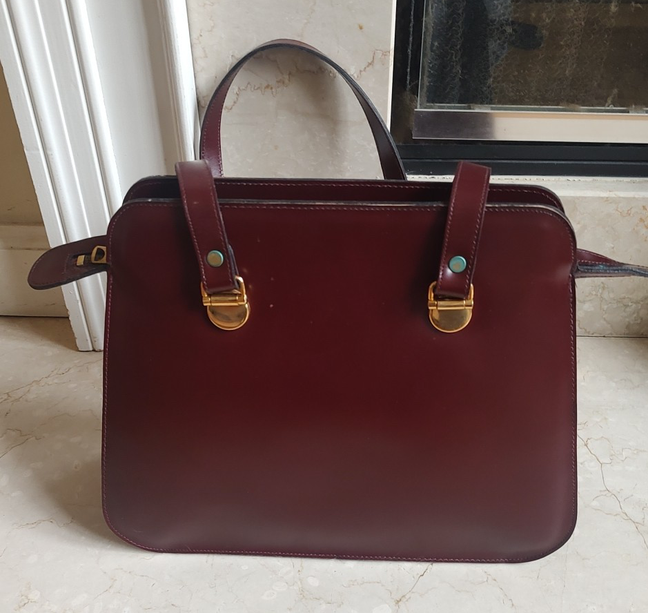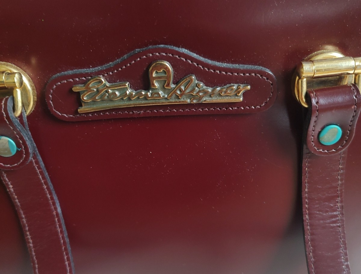 Vintage 70s ETIENNE AIGNER Handmade Leather Handbag Shoulder Bag OXBLOOD RARE. Condition is preowned. Shipped with Ground Advantage. Great looking purse in good condition. Light wear on the bottom and top edges. There is some greenish tones/patina on the front of the bag per the photos. Please see all photos as they are part of the condition. The measurements are 10 inches in height and 12.5 inches in length. The shoulder drop is 10 inches. The inside of the bag is black and there is an interior pocket.