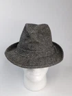 This stylish fedora hat is a must-have for any fashion-forward man. Made in the USA with a cotton blend fabric and canvas material, this black and white striped hat features a 2-inch brim and a 5-inch crown height. Perfect for any casual occasion, this vintage-inspired hat is lightweight and comfortable to wear. The hat comes in men's size 7 and is adorned with colorful themes, making it a unique accessory for any outfit. Whether you're looking for a statement piece or simply want to add some flair to your everyday look, this fedora hat is the perfect addition to your collection.