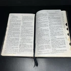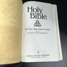 Vtg Holy Bible Large Print Red Letter KJV Nelson 1982 Thumb Indexed Religious Christianity. Shows signs of wear as seen in the photos near the spine. Ribbon is frayed on the bottom as seen in the photos.