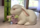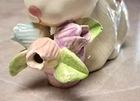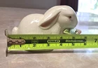 This vintage K's Collection white rabbit figurine is a charming addition to any decor, especially for Easter or spring-themed displays. Featuring a glossy glazed finish and hand-painted pink tulips, this 3.5" piece is perfect for a shelf, tiered tray, or mantle. Item Details: Brand: K's Collection (Original Gold Foil Sticker intact on bottom) Theme: Easter Bunny / Spring Tulips Material: Glazed Ceramic Size: Approx. 3.5" Height x 5" Length Construction: Features original ceramic vent holes on the bottom. These are intentional parts of the manufacturing process to allow for proper airflow during kiln firing and are not considered defects. Condition Note: This item is in good vintage condition. Please note the following minor imperfections (pictured): A small chip on the underside of one leaf (not visible when displayed). A very light, small mark under one eye. Minor scuff marks/shelf wear on the bottom base. Please refer to the photos for a close-up look at the details and condition. Internal Ref: SS#125