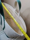 21 inches long. In great condition for it's age! Football just for reference. The vintage LL Bean Boat and Tote Canvas Bag in green and cream zig zag is a rare find from the 80s. This large tote features a solid pattern with double handles made of canvas and cotton. The bag is perfect for travel, casual outings, or business use, and is eco-friendly and water-resistant. Made in the United States by L.L. Bean, this unisex accessory has a timeless 80s and 90s theme that adds a unique touch to your outfit.