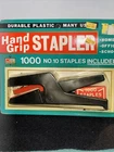 I buy most of my stuff at Auctions and do not know a lot about them - I try to show honest pictures and descriptions. thanks! This product is a vintage stapler made of durable plastic, manufactured in Hong Kong. It comes with 1000 No. 10 staples and has a hand grip design. The stapler is not handmade nor modified. It falls under the category of desktop collectibles and is suitable for collectors of pens and writing instruments. Please look over pictures - I try to be as clear as I can with all the pictures. Most of the items I sell, I do not know a lot about as I get them at estate sales. Thanks!