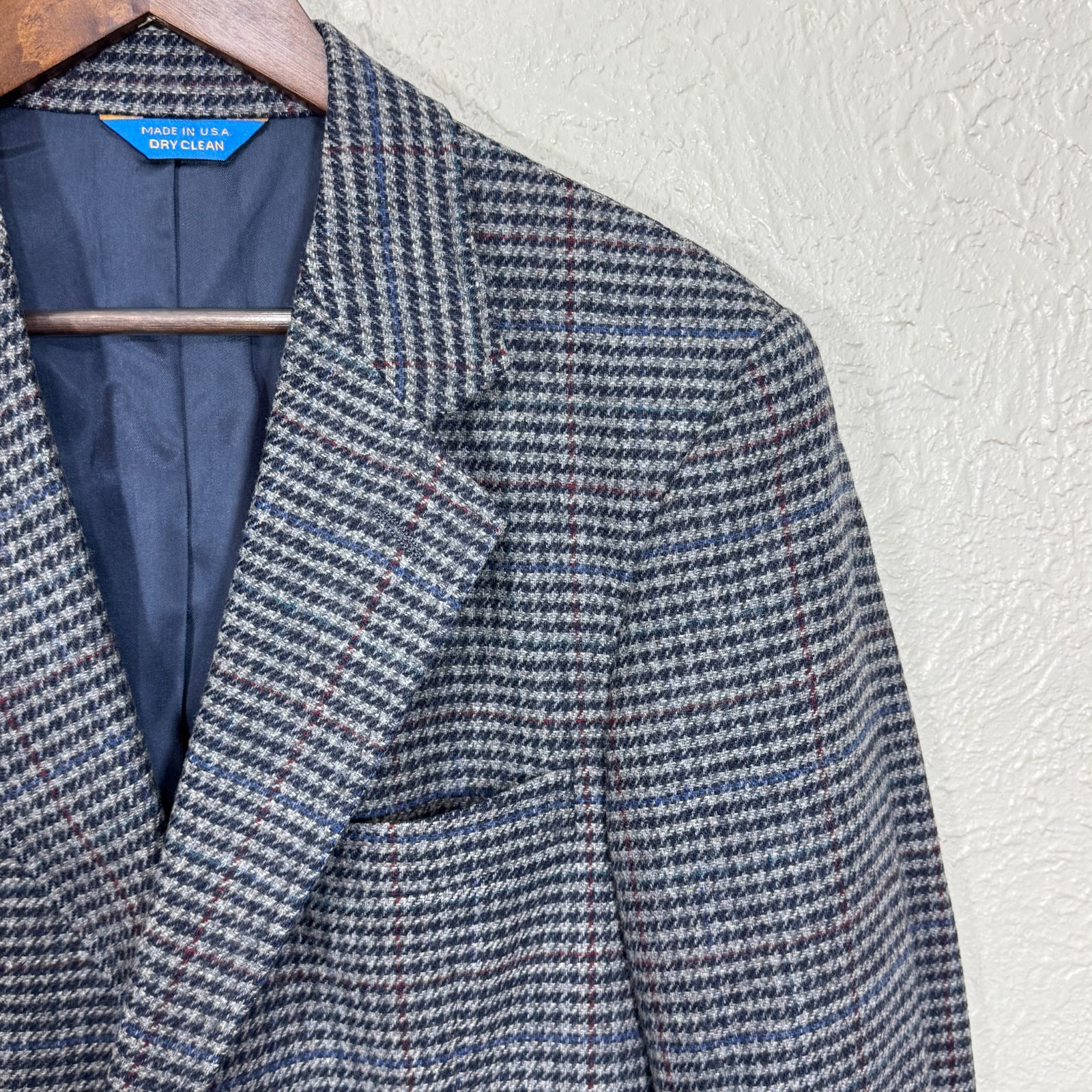 Vtg Pendleton Blazer Sport Coat 40 Houndstooth Wool Tweed USA Heritage Academia Brand: Pendleton Size: Men's 40 Color: Navy, gray, black, with subtle red and blue accents Features: Two-button closure, singled breasted, decorative buttons, notched lapel, back vent, flap pockets, fully lined Material: 100% pure virgin wool Country of Origin: United States Condition: There's a small divet on the left sleeve cuff (not quite a hole). Please see the last picture for a detailed view. Otherwise, this item is in excellent preowned condition with no other flaws. All purchases are shipped within one business day of purchase. Free returns are accepted for any reason within 30 days of purchase. Keywords: heritage, academia, quiet luxury, normcore, woolcore, vintage prep, classic menswear, fall layers, Ivy League, timeless