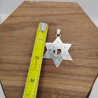 This exquisite vintage pendant features a sterling silver Star of David design with a Hebrew Chai symbol, making it a meaningful gift for any occasion. Crafted in Israel and marked 925, it suits both men and women seeking a timeless accessory. Excellent condition. Measures 2 1/8" long x 1 5/8" wide. • Vintage design • Sterling silver • Star of David • Hebrew Chai symbol • Made in Israel • 925 silver • Unisex