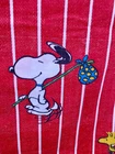 70s Vintage Stevens UTICA .. Peanuts Hobo Snoopy & Woodstock in several funny poses Twin Size Flat Sheet Red with White Stripe Very good pre-owned condition. No holes, no stains. Does have minor wash fade (see photos) no smoking no cats Fast shipping