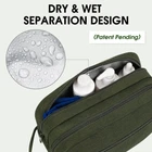 WANDF Travel Toiletry Bag with Wet Compartment Toiletry Organizer Shaving Bag Hanging Dopp Kit for Men Women (Green) Product Details Color: Green Brand: WANDF MPN: Does not apply UPC: Does not apply EAN: Does not apply Product Dimensions: 10.5 x 5 x 6.75 inches Item Weight: 7 ounces Department: Unisex Adult Manufacturer: WANDF Country of Origin: China Wet/Dry Separation- The WANDF toiletry bag is designed with a spacious wet/dry separation area, allowing you to easily store damp towels, toothbrushes, toothpaste, spray bottles, and other toiletries while traveling, eliminating the inconvenience of mixing wet and dry items.(Patent Pending) Large Capacity- 10.5 x 5 x 6.75 inches. This travel makeup bag features a roomy main compartment that can accommodate large bottles of skincare products, cosmetics, facial cleansers, razors, shaving cream, travel shampoo, and various essential toiletries. Additionally, it is equipped with three mesh side pockets for storing small cosmetics and skincare items vertically, while the front zip pocket provides extra convenient storage space for smaller makeup and toiletry items. Convenient Handle Design- The convenient handle design of this travel toiletry kit makes it easy to carry and hang. Whether you are on a business trip or leisure travel, you can effortlessly place it in your suitcase or backpack to meet your various travel needs. Multi-Functional Bag- This travel bags combines practicality and versatility, making it perfect for everyday use and various types of travel, such as weekend getaways, business trips, and overnight stays.It can function as a toiletry bag, a washbag, or even a makeup bag, offering versatility for a range of purposes. Well-Designed with Durable Materials - The WANDF toiletry bag is made from wear-resistant and water-resistant materials, equipped with neat stitching, smooth zippers, and a design structure that ensures the bag maintains its shape, offering long-lasting durability.