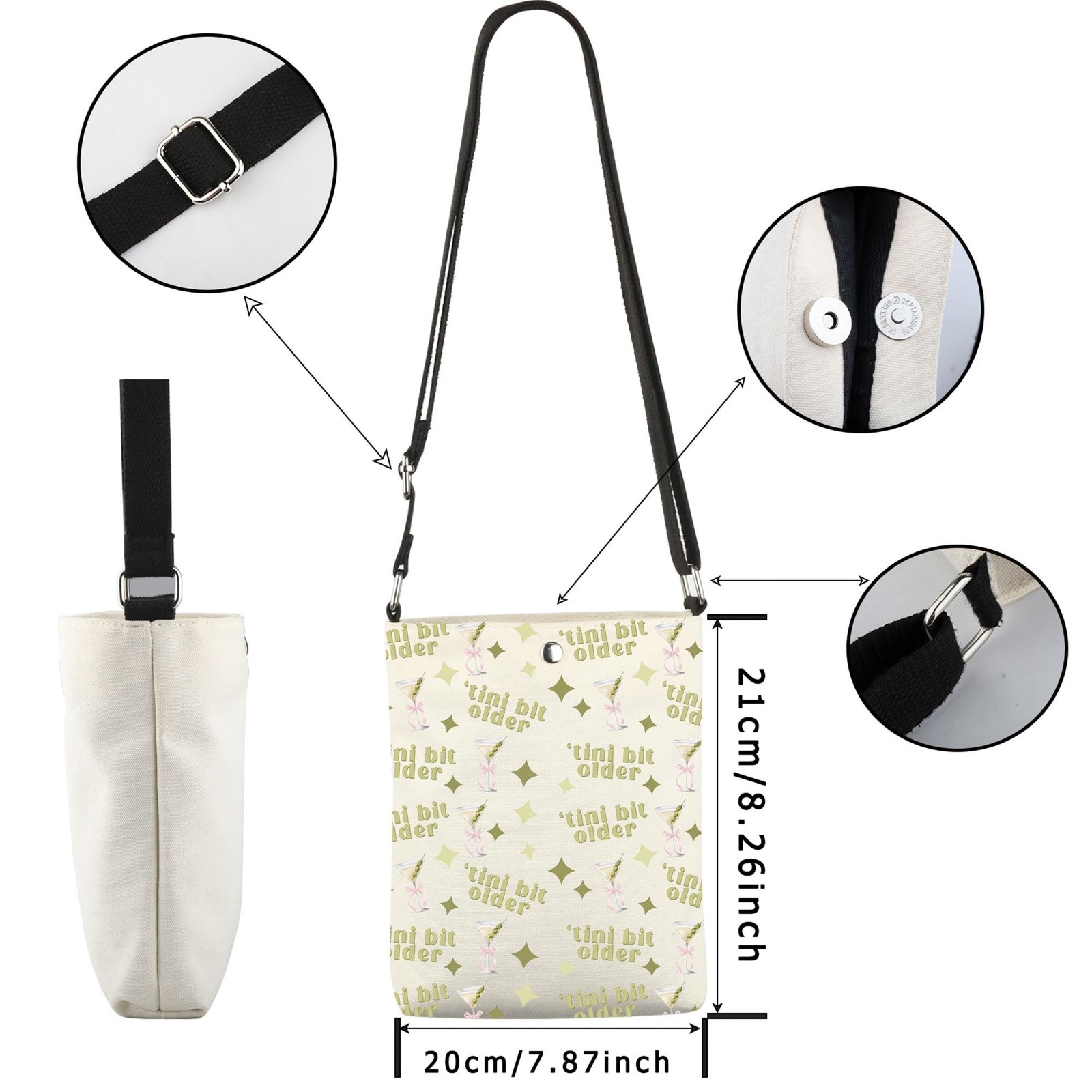 WCGXKO Tini Bit Older Crossbody Bag Dirty Martini Gift Bachelorette Party Gift Tini Time Gift Product Details Color: Tini Bit Older Cro Brand: WCGXKO MPN: Does not apply UPC: Does not apply EAN: Does not apply Product Dimensions : 7.87 x 0.59 x 8.26 inches; 5.28 ounces Department : Unisex Adult Date First Available : October 25, 2024 Country of Origin : China Welcome to EIGH8. Our crossbody bags are designed not only to carry your daily essentials but also to accommodate a variety of items, including your phone, wallet, keys, sunglasses, valuable objects and so on.