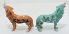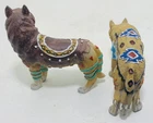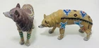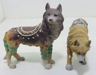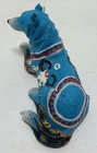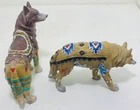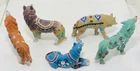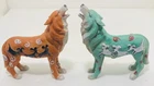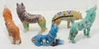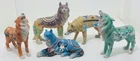 This beautiful set of five figurines from Westland depicts the majestic wolf in a Native American tribal design. The intricate details of the figurines are made from high-quality resin material and have been crafted with great care. The blue wolf has a chipped ear.