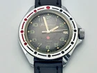 WOSTOK Komandirskie 2414A Vintage Wristwatch Vostok USSR Serviced Watch Soviet Watch "Commander" 17 Jewels, order of the USSR Ministry of Defense, Calendar, Black Leather Band, luminescent Indexes. Produced by the Chistopol Watch Factory The watch is serviced by professional watchmaker. The service included complete disassembly, cleaning and subsequent lubrication of the mechanism. Could be a great gift for someone you love or can be added to your collection. Contact me if any questions. I do offer combine shipping discount if you buy 2 items or more. I make shipments the next business day after the purchase. Please watch the photos carefully as they are important part of description. Thanks for your interest. Have a look at some other lots at our store. 💛💙