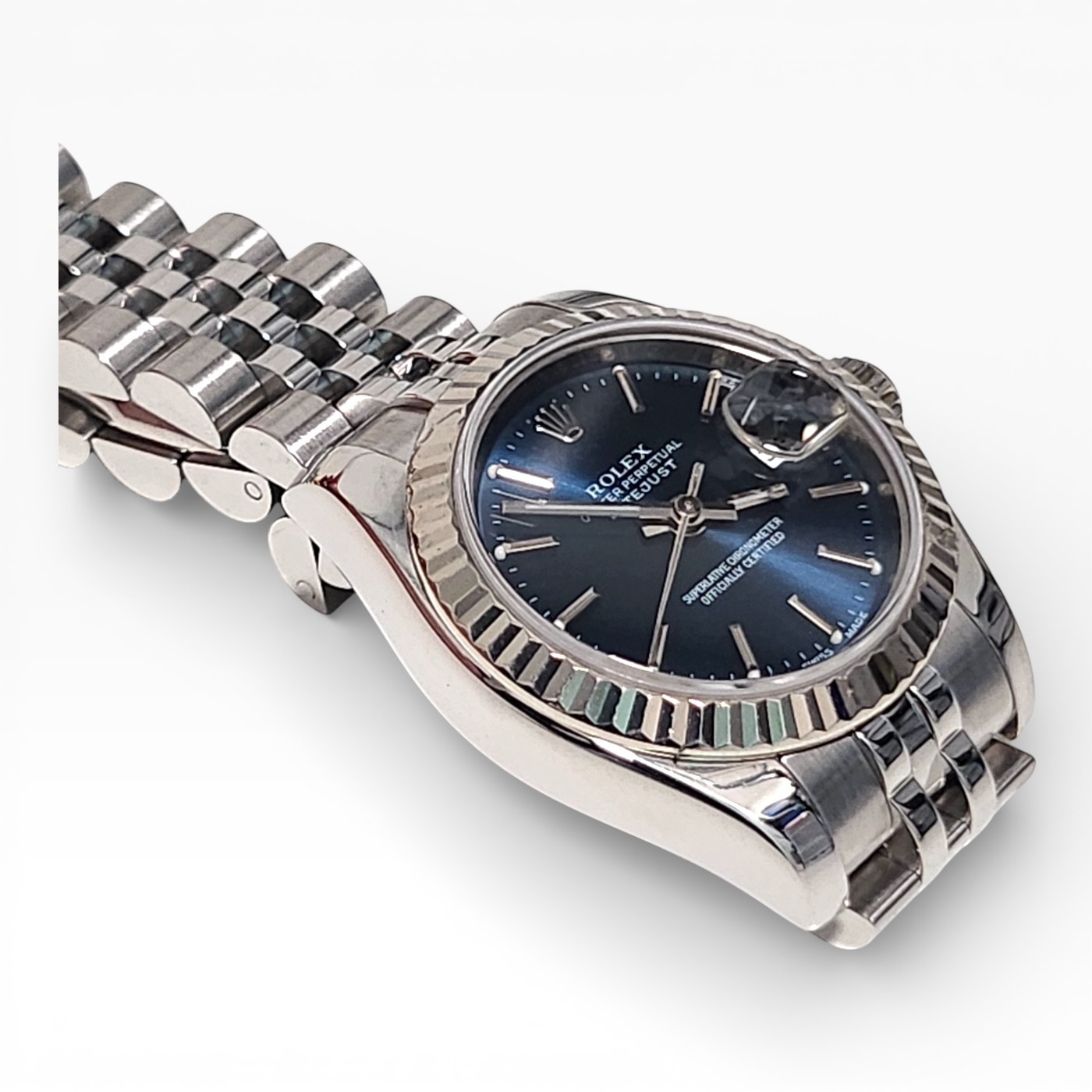 Our eBay Feedback Newsletter Signup! Add as favorite! Home About us Terms and Conditions Policies Contact us Store categories STORE HOME AUDEMARS PIGUET BREITLING BVLGARI BVLGARI JEWELRY CARTIER HUBLOT IWC OMEGA PANERAI ROLEX TAG HEUER OTHER W/Papers 2010 Rolex Ladies Datejust 26 mm Blue Dial Jubilee Steel Watch 179174 OUR PRICE: $7,750.00 W/Papers 2010 Rolex Ladies Datejust 26 mm Blue Dial Jubilee Steel Watch 179174 Item Information Manufacturer Rolex Category Ladies Datejust Reference Number 179174 Band Stainless Steel Band Color Steel Band Type Jubilee Bezel 18 kt White Gold Fluted bezel Box No Case Lock Screwback Case Mes 26 mm Clasp Type Deployant Color Steel Crystal Sapphire Dial Color Blue Dial Gral Condition Very Good Condition Dial Type Sticks (applied) Dial Features NEW STYLE BRACELET Function Date Gender Ladies Gral Condition Very Good Condition Hands Bar-Shaped hands Material SS/WGBZ Movement Type Automatic Self Wind Papers Yes Shape Round Size 26 mm Type Luxury Year 2010 "Interwatches will not be responsible, or held liable for any mistakes to listings, misprints, or typos, made by a Interwatches representative." "Interwatches is not affiliated with, nor do we have any relationship with Rolex or any of the watch brands that we sell except as otherwise noted on our ebay terms and conditions. All brands are trademarks of their respective owners" Information About us Shipping Returns FAQs Products Newly listed Ending soon Lowest priced items On sale Our eBay Feedback Newsletter Signup Add as favorite Contact us Payment Methods Language English Français
