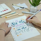 Set of 5pcs dual brush markers, 6pcs sign brush pens, 2pcs highlighters and 1pc fineliner, satisfying the need of lettering, doodling and coloring. Dual brush pen is great for water color techniques. The 1mm fine point provides perfect control for beginning letterers. Sign brush pen with flexible lines features vintage water-based dye ink. Ideal for creative applications. Soft nib highlighter is perfect to use on curve surfaces for marking, highlighting. Quick drying ink reduces smear and bleed that even left-handed people can use it well. Liquid fineliner with 0.5mm tip is water-proof, fade-resistant with large ink reservior. Great for sketching, drawing and illustation.