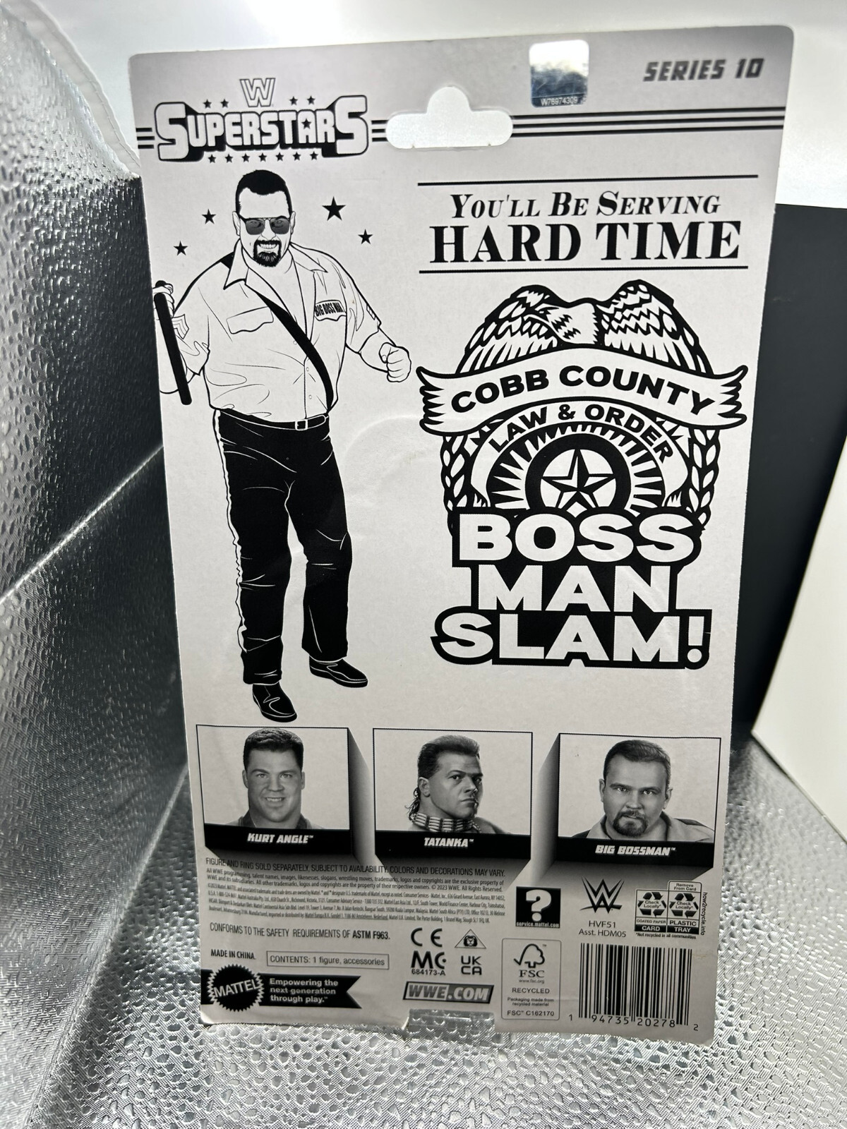 Capture the essence of wrestling iconography with the WW Superstars (Series 10) "BIG BOSSMAN" action figure. This collectible embodies the spirit of the legend with its intricate detailing and dynamic posing, perfect for fans and collectors alike. Standing at 6 inches tall, this Big Bossman figure is a must-have for those who admire the charisma and prowess of the iconic wrestling superstar. Crafted with quality in mind, the figure comes complete with accessories, including his signature prison outfit, enhancing the overall collectibility. The Mattel-created piece is a striking representation of the character, featuring adjustable articulation for heroic poses. With its multicolor finish and durable plastic construction, this action figure makes a bold display to celebrate the rich heritage of wrestling entertainment. Hard to find! Thanks for your time!
