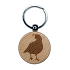 Walking Quail Bird Solid Engraved Wood Round Keychain Tag Charm