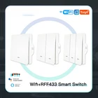WiFi Push Button Smart Switch 1/2/3 Gang Remote Control Light Switch By Smart life/Tuya App Works with Alexa, Google Home By Moes Product Features: 1.Smart App Remote Control: Conveniently control your lights and the backlight indicator with the free mobile "Smart Life"phone App no matter where you are.(Compatible with Android&iOS.)Also,you may easily share it with your family to control your lights together with Smart App. 2.Hands-FreeVoice Control: Compatible with Amazon Alexa and Google Home for easy voice control when your hands are not free,providing your smart life with much more convenience. 3. Simple Push Button Control: With theslightly changed appearance as a traditional switch,it's just okay for us to simply touch control with our hands as a master switch,which fits for the old so much.Besides,a wall panel transmitter can also work with the switch after finishing the pairing to your switch as a vice switch,achieving double manual control to your switch. 4.Non-interfering Control Mode: Differs in features from traditional common switch,this smart switch is able to be controlled by various ways alone with the best value.Each controlling way is able to work independently,providing a much more convenient and comprehensive control mode to your smart home. 5. Timer Setting: Take full control of your Home&Office lights intelligently with the timer feature on your App,which owns a 5+1+1 day programmable schedule to allow you to plan the exact time in advance to turn lights on or off automatically. Auto on/off feature offers you the countdown option of 1 min/5mins/30mins/1hour etc. Attention: WiFi+RF433 Switch(Master Switch): A WiFi+RF433 smart switch that owns all smart functions for intelligently control your lights.So it is a main switch for your connected appliances,as well as a receiver for the wall panel switch because of the RF433 feature. Wall Panel Transmitter(Vice Switch): A wall panel transmitter is a vice switch that has already been paired to the master switch to turn on/off your lights as an simple switch in another easy way,but it doesn't own any wifi smart functions. Packing Listing: MOES Smart Glass Panel Touch Switch(1Pack) 2*Screws Quick installation guide Features: Programmable Schedules Hands-free Voice Control APP Remote Control Touch Control Wall Panel Transmitter Control Consulting our detailed manual,you can easily install it. Q&A: 1.Q:What about the old who just don't know how to use App to control? A:For the old,as well as the little kids,a wall panel transmitter with the same looking as the switch is optional for them to easily control your switch.Simply pair your switch to the wall panel transmitter. 2.Q:Can I control the switch if I am not at home? A:Yes, you can remotely control your switch and conveniently turn it on/off anywhere,anytime. 3.Q:Can I program the schedule myself? A:Yes,our push button switch is programmable.You are able to program your schedule freely. 4.Q:Does this work with Google Home? A:Yes,it does.And it's also compatible with Alexa. 5.Q:May I use a neutral wire? A:Yes,a neutral wire is required for our switch. 6.Q:Do I need to buy a wall panel to match the switch? A:No,there is no need for you to buy as it's a kit that the switch and the wall panel are combined together.