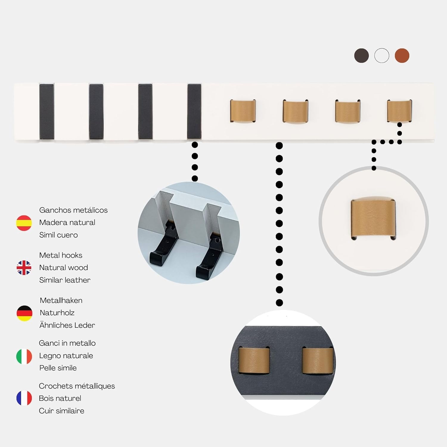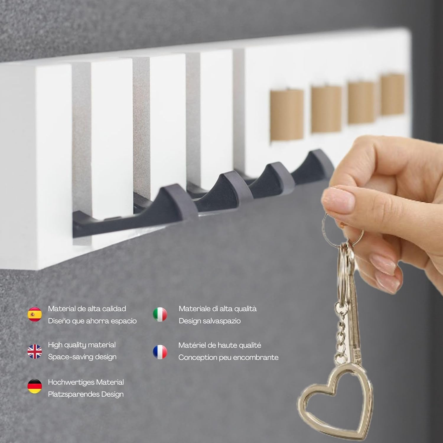 Absolutely love this wall organizer! It keeps my sunglasses and keys neatly in place while adding a sleek, modern touch to my entryway. The faux leather and wood combo looks stylish, and the four hooks hold everything securely. Super handy and looks great—no more searching for misplaced keys or scratched-up shades!