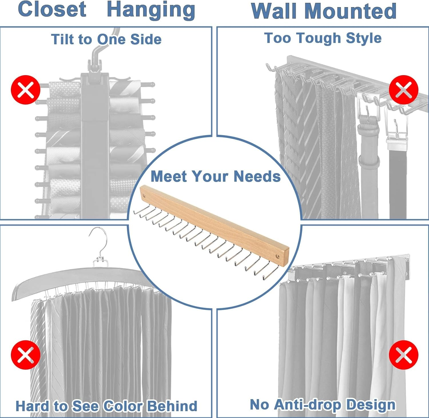 Store New Arrivals Add to Favorite View Feedback Contact Belt and Tie Organizer for Closet, Tie and Belt Rack Wall Mounted with 20 Storage Hooks, Non Slip 180 Degree Rotating Tie Holder Belt Hanger for Closet/Wall Mount Description Number of Pieces 1 Number of Items 1 Color Natrual Special Feature function(f) {var _np=(window.P._namespace("DetailPageProductOverviewTemplatesJava"));if(_np.guardFatal){_np.guardFatal(f)(_np);}else{f(_np);}}(function(P) { P.when('A').execute(function(A){ A.on('a:truncate:po-attribute-truncate-4:updated', function(data) { var isTruncated = !data.truncateInstance.getIfTextFits(); var seeMoreElement = document.getElementById('po-attribute-see-more-id-4'); if(seeMoreElement) { seeMoreElement.style.display = isTruncated ? '' : 'none'; } }) }); })); Convenient 180° Rotation Design, Natural Wood Material, 20 rotating hooks, 1.5-inch flat area hook with a 90° anti-slip design See more Brand OTECKK Material Wood Item Weight 7.4 ounces Shape Round Recommended Uses For Product Tie, Purse, Belt Size 1 Pack Finish Type Wood Product Dimensions 14.5"W x 1.9"H Manufacturer OTECKK 【 Ample Capacity and Multifuntional 】 Our wall-mounted tie rack offers the perfect solution for organizing your ties, belts, wallets, and more. With 20 rotating hooks, it provides ample capacity to keep your items neatly arranged and easily accessible. 【 Anti-Slip and Anti-Wrinkle Design 】 Our tie hanger features a 1.5-inch flat area hook with a 90° anti-slip design, providing a secure grip that keeps your ties wrinkle-free. We've thoroughly tested each hook to ensure the safety of your ties, preventing them from falling to the ground and getting dirty or damaged. 【 Convenient 180° Rotation Design 】The innovative 180° rotation design allows you to adjust the hooks vertically at 90° or horizontally on both sides, optimizing vertical space. When not in use, simply rotate the hooks flat, saving you valuable closet and drawer space. 【 Free Up Closet and Drawer Space 】Our tie rack comes with pre-installed wall mounting accessories and nail holes, eliminating any installation hassles. Install our tie organizer on the wall, closet, or bedroom door to effectively save closet space and keep everything well-organized. 【 Natural Wood Material 】Our wall tie holder is made of high-quality natural wood materials, durable and sturdy. After hanging full of ties, it can also help create a simple decoration, making your room more elegant. Suitable for Men, Fathers, Brothers, Sons, Teachers, and more. It makes a perfect choice. Product Description Simplify your daily routine and elevate the organization of your accessories. Designed to streamline your daily routine, this versatile rack is not just for ties, but also for belts, wallets, and more. Featuring a remarkable 20 rotating hooks , our tie rack offers ample capacity to accommodate your entire collection. Each hook is meticulously crafted to ensure smooth rotation, allowing you to effortlessly browse and select your desired item. No more rummaging through drawers or struggling with tangled accessories! With our tie rack, you can finally bid farewell to the frustration of misplaced or wrinkled ties. The clever design keeps your accessories neatly arranged and easily accessible, saving you precious time during busy mornings. The hooks are thoughtfully spaced to prevent overcrowding, ensuring that each item has its designated place. Are you trapped in a situation like this? You're constantly searching for your ties, belts, clothes, vests, and various other garments, and they've turned your home into a mess. The search is always on. No need to worry! Our belt and tie wall hanger is compact in size, suitable for any space, and frees up valuable storage area. It maximizes your storage capacity, saving up to 80% of space, allowing you to bid a final farewell to clutter. Experience the power of compact convenience and versatile functionality Our belt and tie rack is not only designed to store your belts and ties but also offers a practical solution for organizing vests, scarves, necklaces, medals, and even underwear. It's a multi-functional storage solution that effortlessly enhances the tidiness and aesthetic appeal of any space, whether it's your walk-in closet, entryway, living room, kitchen, or bedroom. With its sleek design and efficient storage capacity, our belt rack is the perfect addition to simplify your life and elevate your living space. Take control of your space and enjoy the benefits of a clutter-free environment. The versatility of our tie organizer allows you to customize its placement according to your preferences. Mount it on the wall for a sleek and space-saving solution, or attach it to your closet or bedroom door for quick and convenient access. No matter where you choose to install it, our organizer will seamlessly integrate into your existing decor, adding a touch of elegance to your space. Installation is a breeze with the included mounting hardware and easy-to-follow instructions. Within minutes, you'll transform your closet into an organized haven, with plenty of room for other essentials. Plus, our tie organizer is built to last, ensuring long-term durability and reliable performance. ABOUT US We offer the best prices around on high quality products. Our E-store includes media such as books, movies, music and games while offering electronics, toys, sporting apparel, clothing, tools, general home, garden items and more. SHIPPING We are always working hard to ensure your package arrives as soon as possible. Please understand that some factors like weather, high postal traffic, and the performance of shipping companies are outside of our control. We offer free shipping to the lower 48 states and ship within 2 business days of payment, usually sooner. We do not accept P.O. Boxes. Please provide a physical address. RETURNS We offer a 30-Day Return Policy on items which you are not completely satisfied with. You have the o