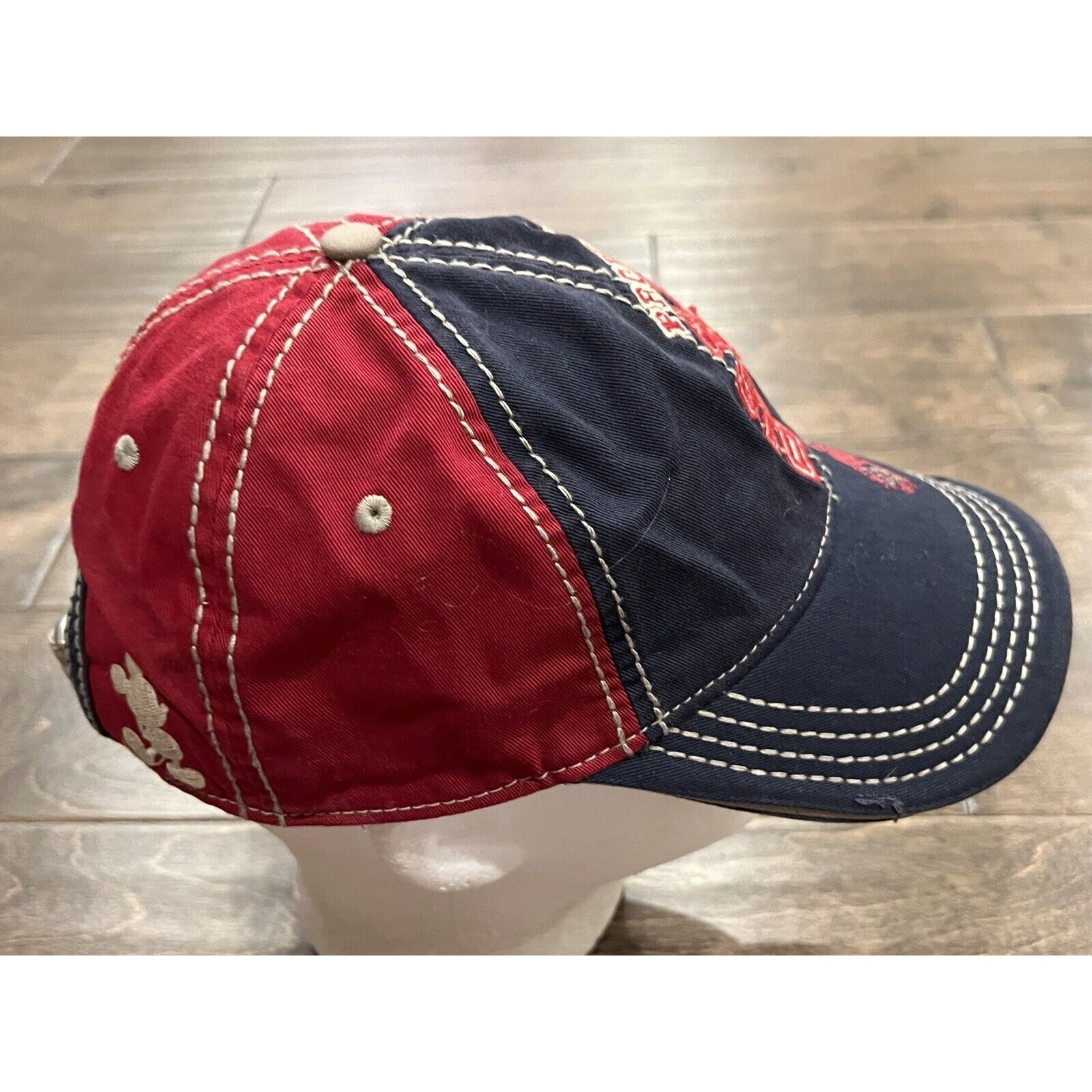 Property of Walt Disney World Hat Blue Red Strapback Baseball Cap Mickey Mouse. Condition: Good used condition. Worn with visible wear. Please note that all items may fit differently depending on Brand, Fit, or Prior Conditions. Also, photo colors may vary due to lighting exposures at the time of capture.