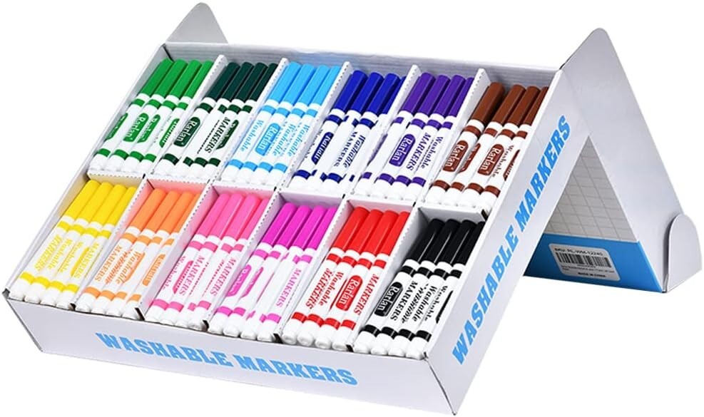 Absolutely love this huge set of washable markers! The colors are vibrant, and the conical tips make them super versatile for both broad strokes and fine details. Perfect for classrooms, art projects, or just keeping kids entertained—they wash off easily, so no stress about messes. The sturdy storage box keeps everything organized, and with 240 markers, running out is never an issue. A fantastic value for teachers and parents alike!