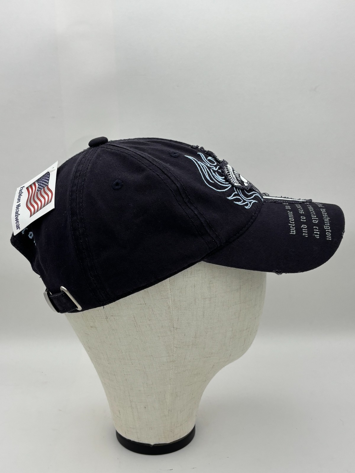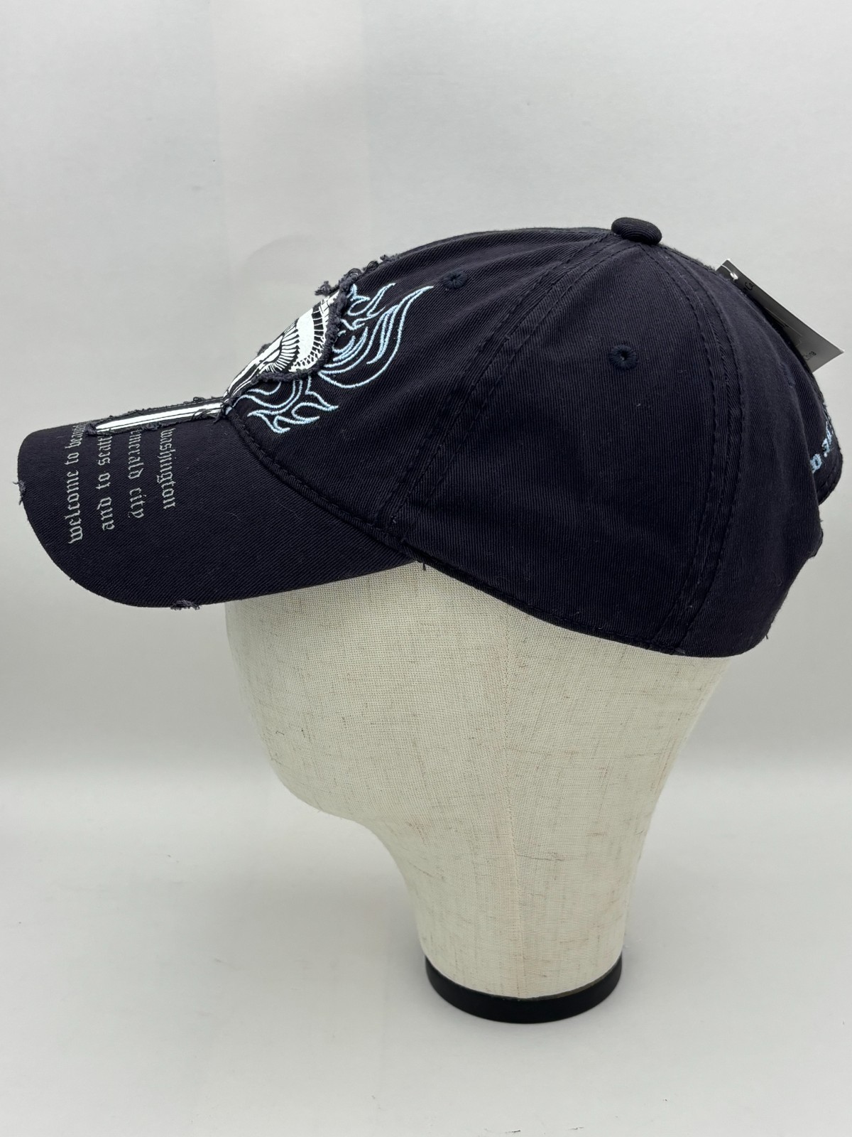 Washington Seattle Space Needle Distressed Dad Hat Fashion Headwear cap distributed by Smith-Western Co. Seattle Space Needle graphic with flame design Embroidered “Washington” text on brim and back Distressed style with frayed brim edges 100% cotton construction Adjustable back strap with metal clasp One Size Fits All (adult) This hat features an intentionally distressed look. Fraying at the brim is part of the original design, not damage. Please see included photos for full details and condition. 💛 Thanks for supporting our small family business!