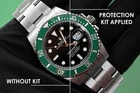 Easy purchasing process and delivery was quick. The kit is well made and fits perfectly. Application can be a tad fiddly, but with a little patience the kit can be applied quite easily. The quality of the materials appears to be fairly robust, and hopefully will do its job.... although I'd rather not find out. I checked the watch the next day and it appears to be invisible, although on closer inspection it can be seen. Overall, it does not affect the aesthetics. This kit is highly recommended.