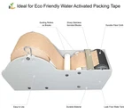 Water Activated Desktop Gum Tape Dispenser with Reinforced Kraft Paper Gummed Tape 2.75In x 75 feet Eco Friendly for Sealing Office Supplies (Grey) QShield Water activated tape dispenser is ideal for small to medium businesses looking for a cost-effective, eco-friendly yet professional looking packing solution, this kraft paper tape dispenser is lightweight, constructed with heavy-duty plastic, easy to set up, operate, and designed to sit on a desktop or can be mounted to the workbench with screws provided. Package includes reinforced kraft sealing tape 2.75In x 75 feet to start packing your boxes. · EASY TO USE : Water activated manual tape dispenser can be effectively applied to shipping boxes in packaging manufacturing plants, offices, large shopping malls, retail stores and supermarkets. · VERSATILE TAPE SIZE : The tape dispenser can accommodate kraft tape width between 1.18in to 3.15in and roll diameter under 7in. The longest net size is 12.6in x 4.05in x 5.23in. · HIGH QUALITY EQUIPMENT : The tape dispenser has a high-quality blade, which can easily and quickly cut the required length of tape. During your using the device, the black roller on the front can be removed for you to put water in. The dispenser is equipped with a special packaging bag to prevent the blade from continuing the cutting force, leading to the increase of life span of the blade so that the tape can be cut neatly immediately. · EXQUISITE STYLE : The style of natural green color represent nature, the adjustable wheel hub with a brake allows you to control tension and conveying. It is compact and easy to adhere to the implementation of achieving the best sealing result. In front of the cutter, both using the rolling stick or not using it can give you the best effect. · NO QUESTIONS ASKED GUARANTEE : Your satisfaction is our top priority, and we will make things right for you. If you are not satisfied with our products, you can contact us and we will refund you to ensure that you have a pleasant shopping experience in our store. FREQUENTLY ASKED QUESTIONS Q : What type of tapes will work? A : Dispenser works with both reinforced and non-reinforced water-activated kraft tape Q : What is the maximum tape width & length suitable? A : Kraft tape dispenser can tape up to 3.15 inches wide and tape roll diameter under 7 inches (up to approx. 600 feet in length) will work smoothly. Q : What is the tape dispensing length? A : This is a manual water tape dispenser and you can dispense tape as long as required Q : What is the roller type? A : Gummed dispenser is equipped with high quality fabric roller for maximum water absorption & even application Q : How large is water tank? A : Water tank can hold up to 250 ml water Q : What is the dimension of the dispenser? Is it really heavy? A : Gummed tape dispenser is 12.6in L x 4.05in D x 5.23in H and weighs 1lb 9 oz. DIRECTION OF USE: Fill the water tank with room temperature water, ensure the roller can roll freely and is wet then roll the tape with gummed side facing down and passing under the blade, pull the tape & cut to the desired length and you are ready to pack your boxes in an eco-friendly way. PACKAGE CONTAINS: 1 Reinforced Kraft Paper Gummed Tape 2.75In x 75 feet (starter), 1 Water Roller, 1 Tape Roll Hanger, 1 Mounting Kit, 1 Storage Pouch.