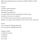 You may also like DRIVE BELT FOR E-TON ATV VECTOR 250 / VECTOR 300 / GAMAX AX 250 / AX 300 43.85 USD Free shipping Drive Belt For Linhai M150 MARGAY 150 T3A ATV 150cc / 36704 29.85 USD Free shipping DRIVE BELT FOR ACCESS MAX 650I 4X4,MAX 650I LT 4X4,MAX 750I 4X4,MAX 750I LT 4X4 96.85 USD Free shipping Timing Chain 14401-KK1-003 For Honda Xr250 /250R/ 250L Kawasaki Ex305 Er250 Z250 24.85 USD Free shipping Drive Belt For Access ATV AMX 8.57 / Shade Sport 850 / Xtreme 850 / LV / EPS 121.85 USD Free shipping Generator Stator Regulator Rectifier Gasket Set For Yamaha Big Bear 400 02-05 122.85 USD Free shipping Drive Belt For Linhai ATV 200 T3b 200cc / 29529 26.85 USD Free shipping STARTER CLUTCH ENHANCED ROLLERS FOR Yamaha BREEZE GRIZZLY 125 YFM125 YFA125 USA 57.85 USD Free shipping DRIVE BELT FOR LINHAI ATV CLASSIC DEMON MUDDY GOON 300cc 260cc DRAGHONFLY 400cc 28.85 USD Free shipping Big Bore Cylinder Piston Gasket Kit 80mm For Honda Sportrax TRX300EX 93-08 330cc 98.85 USD Free shipping Drive Belt For Access Xtreme 300 (SM + Enduro) / Triton Baja 300 / Outback 300 29.85 USD Free shipping Drive Belt For Linhai 500, M550/ M550L, T-Boss 550, Promax 500 T3b 93.85 USD Free shipping Water Pump Seal Repair Kit For Honda Atv Trx450R Trx450Er Trx 450Er 2004-2013 Features Condition: 100% Brand New Color: As Picture Shown Type:Water Pump Repair Kit It includes: Water Pump with Seal, Bearing, Oil Seal, O-Ring Installation instructions not included. This kit makes repair and maintenance of water pumps easy. Replace oem number :91001-KA4-003, 93102-12321-00 ,19217-MAL-300 Fitment Fit For Honda ATV TRX450R 2004-2009 Fit For Honda ATV TRX450ER 2007-2013 Package Included 1pc Water Pump Seal 1pc Bearing 1pc Oil Seal 1pc O-Ring -About US Founded in 2012, VIPJQ have professional development and sales, and are involved in various products, providing customers with various high-quality products. Since its establishment, VIPJQ has always adhered to the service concept of "customer first" and the management concept of "pursuit of quality", and is committed to providing customers with high-quality original designs. We commit to provide you the best innovative, quality products & professional services with competitive prices. We value every customer, and we look forward to providing solutions for your business needs to help your business achieve its goals, please contact us immediately! We are all about you! We are a Japanese seller,but with large warehouse in USA. We are profesional on Auto Parts,Car Parts,Motorcycle Parts,3C,other hot sale items and so on. We aim to provide to customers high quality product and best service. -About Shipment&Returns The item usually will be dispatched within 3 days after you ordered.All are free shipping. And it usually takes 3-10 working days to delivery depends on buyers' address or other majeure on the way. If you are not satisfied with the items and want to return the item,we hope you could message us first,we will give you the return details, we think we could give you the best service to save your time and money.Thank you. -About Feedback&Customer Service If you are enjoy your shopping here,not only enjoy the items but also the service,we are appreciate you could give us a 5-star feedback. If you are not satisfied with the item,before you give us the negative feedback,we hope we could give you the best solution through our commutication. We think we could do it if you give us the chance.Thank you.
