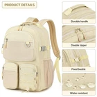 Multi-Pockets Backpack Weight: 1.56lb Dimension: 17.3×12.4×6.7 in Material: water resistant polyester Construction: 1 large zipper main pocket with 1 Laptop Compartment & 2 small open pockets 1 large sub zipper pocket with many organization pockets 5 zipper pocket in the front 2 Mesh side pocket Description: The multi front pocket fits for your keys, ID cards, wallet, power bank, etc. The side mesh pockets is perfect for folding umbrella and water bottle. The large sub zippered pocketcan hold magazines, A4 documents, pen, power bank etc. The Large main room can hold cloths, books, laptop, textbook and so on. The stylish backpack is great for everyone, it is suitable for travel, outdoor, sports, work, shopping and so on. Package Includes: 1 x Backpack [Durable & Lightweight] - The big backpack is made of water resistant polyester fabric with metal zippers. It is lightweight only 1.56lb, Great for casual daily use, school and travel. [Large Capacity] - Size: 12.4×6.7×17.3 inches, it is large enough to carry everything you need. The main room contain 15.6 Inch laptop compartment can hold textbook, tablet, chargers, books, clothes and other necessities. [Multi Pockets] - The multi front pocket allows you to put your small items in an organized manner. Side pockets for water bottle or umbrella. Large middle sub pocket for magazines, A4 documents, etc. [Comfortable] - The shoulder starp is adjustable, you can adjust the lenth that suits yourselves, and luggage strap allows backpack fit on luggage/suitcase, slide over the luggage upright handle tube for easier carrying. [Multi Usage] - The casul daypack is unisex and suitable for various activities, including school, travel, college, work, outdoor activities, and daily use, etc.