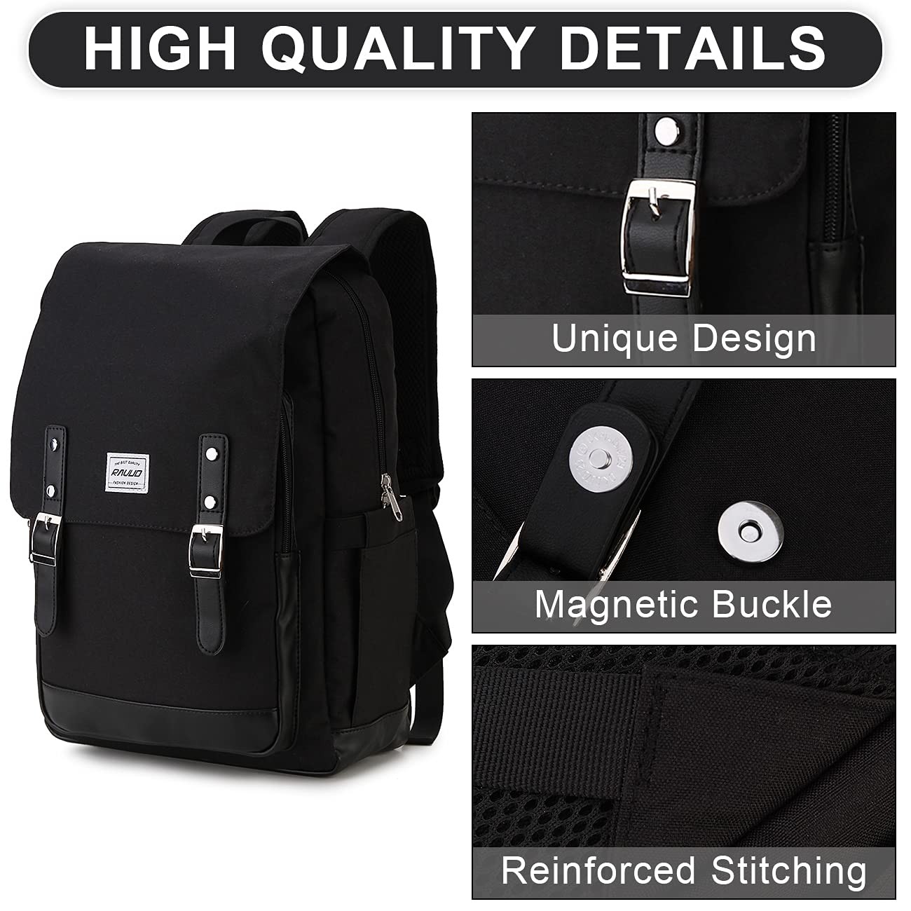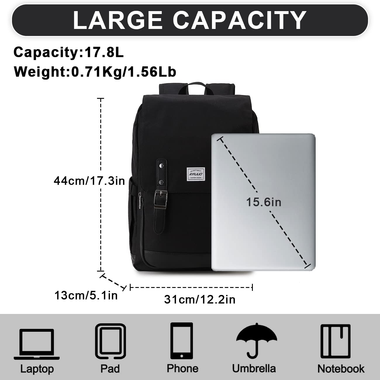laptop backpack is made of durable and water resistant polyester fabric with double zippers, which could ensure the backpack last for long.With vintage style and trendy floral patterns,this flap backpack fits college and office people. Feature: Large Capacity- Dimension:17.3x12.2x5.1inch Inerior Construction: 1 x Laptop Compartment with padded. Fits Laptop up to 15.6 inch. 1 x Roomy Main Pocket.Plenty of room for college supplies,binders,headset,thin clothes. 1x Large Zipper Pocket .Fits Ipad and long wallet. 2 x Zipper Pockets. Keep phones,sunglasses and other small items. Exterior Construction 1 x Front Pockets with zipper:For Phones,pens,keys,wallet, Purse,glasses and other small items. 2 x Side Pockets:Large Pockets on both sides,fit water bottle,small compact umbrella and other items. Best Gifts: The utility gifts for those who go ttravel and work,a must for university,travel accessories and laptop accessories,serves you well as a outdoor travel daypack and college backpack, daypack for men, women and adults. PACKAGE INCLUDE: 1 x laptop backpack. ✿STYLISH BACKPACK: college backpack is made of durable and water resistant polyester fabric with double zippers, which could ensure the backpack last for long.The design of backpack is classical and stylish, crafted with vintage style and trendy floral patterns,leather trim and metal decoration,it is very suitable for the daily needs of young people.THIS ITEM IS NOT INTENDED FOR USE BY CHILDREN 12 AND UNDER ✿LARGE CAPACITY:The size of this flap bag is 17.3x12.2x5.1inch, and the capacity is 17.8L,which it is space availability to keep a laptop, journal or folders.Laptop compartment fits 15.6" laptop, and Weight:0.71kg/1.56lb, Used for adults, women, men and teacher. ✿EASY TO ORGANIZE:This men backpack features many pockets to organized your belongs well.External access to 1 front zipper pockets for small accessories,2 side pockets for water bottle and umbrella.Internal one main separate compartment can hold 15.6" Laptop,2 slip pockets for earphone and notebook,1 spacious packing roomy for important files,, magazines, iPad, clothes,daily necessities and more.It’s a convenient bag to keep all your things organized and easy to access. ✿LIGHTWEIGHT & COMFORTABLE: The laptop backpack with adjustable padded shoulder straps can relieve the stress of shoulders for maximum comfort while carrying your belongings for a long time.With foam-padded top handle and extra stitching,it’s easy to carry heavy loads. ✿MULTIPURPOSE BACKPACK:Fashion backpack can meet all your demand, it can be used as a travel backpack,work backpack as well as a nappy backpack. Whatever activities you have got on,college, travel,weekend getaways, shopping, biking, camping, hiking, gym, cycling, dating, it is convenient for all occasions.It’s also a perfect gift for women and men on Birthday, Christmas, Graduation.