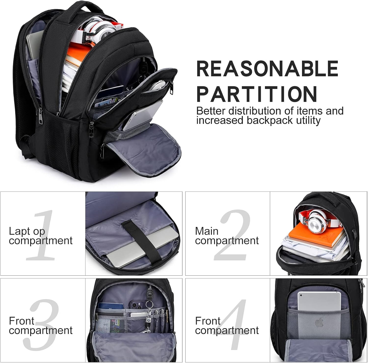Store New Arrivals Add to Favorite View Feedback Contact Laptop Backpack for Men Women, School Backpacks for Boys Girls,Water Resistant Black Backpack with USB Charging Port,15.6 Inch College Bookbag Daypack Description Item model number S3 Item Dimensions LxWxH 11.8 x 8.3 x 16.9 inches Color Black Color Black Item Weight 1.5 pounds Department unisex-adult Product Dimensions 11.8 x 8.3 x 16.9 inches Size 15.6 Inch LARGE CAPACITY BACKPACK WITH LAPTOP COMPARTMENT: This black school backpack for men women has a simple appearance and lightweight material. There is an independent laptop protection compartment, which can fit a 15.6 Inch and 14 Inch laptop. The front of the computer back pack also includes 4 pockets of different sizes, which can store passports, power banks, pencil cases, clothes and other items needed for daily study, office and travel. USB CHARGING PORT: The laptop backpack is equipped with an external USB port and a USB conversion cable, which is convenient for charging mobile phones and other electronic devices while walking. The inner pocket design of the laptop backpack for men can prevent power bank from moving in the inner space. (Note : power bank is not included) ANTI-THEFT POCKET & LUGGAGE-STRAP: The travel backpack has an embeddable luggage strap to release the pressure on the back and shoulders during use. The invisible pocket on the back of the laptop backpack for men can protect your phone, wallet and other valuables from being lost. The foam padded top handle increases the longevity of the backpack for men for all basic daily needs for college, work, travel, business trips. ERGONOMIC & WATER PROOF FABRIC: Comfortable airflow back design, made of highly elastic breathable sponge and honeycomb shock-absorbing fabric, thick and soft, heat dissipation fast. Widened, adjustable shoulder straps reduce weight and protect your back and shoulders. High-density polyester waterproof oxford cloth keeps your belongings from getting wet. VARIOUS OCCASIONS &100% SATISFIED: This laptop backpack can also give the backpack as a gift to teacher, father exquisite and practical. A great choice for office work backpack, travel backpack for men women, daily use basic backpack, teachers backpack, school supplies, students backpack all indoor and outdoor activities. Age:over 3 years old Product Description 15.6 Inch Laptop Backpack with Multiple Pockets 1 Separated laptop padded compartment can hold a 13.3"-16" laptop and a 12.9" ipad 1 Spacious main compartment is large enough to fit lots of stuffs like clothes, A4 size books, school supplies, travel accessories 1 Front pocket with zipper pockets inside, which is convenient for you to organize and classify small items such as mobile phones, wallets, pens, etc. 1 Front large pocket can fit your business files, magazine and so on 1 Back anti-theft pocket fits the significant items like credit cards, ID card, passports 2 Side mesh pockets for quick-access to your water bottle and umbrella SPECIFICATIONS External Dimensions: 12.2" L * 7.9" W * 17.7" H Weight: 1.5lb Capacity: 30L Material : Water Resistant Oxford Fabric Fit Laptop Size: 16 Inches or less Style: Travel, Business, College, Casual. ABOUT US We offer the best prices around on high quality products. Our E-store includes media such as books, movies, music and games while offering electronics, toys, sporting apparel, clothing, tools, general home, garden items and more. SHIPPING We are always working hard to ensure your package arrives as soon as possible. Please understand that some factors like weather, high postal traffic, and the performance of shipping companies are outside of our control. We offer free shipping to the lower 48 states and ship within 2 business days of payment, usually sooner. We do not accept P.O. Boxes. Please provide a physical address. For shipping outside of the continental USA, we only use eBay's Global Shipping Program.The item is shipped to KY and then sent to the rest of the world. International customers are responsible for all duties and taxes. Continue to check out in order to calculate costs for shipping the item to your country. Messages regarding eBay's Global Shipping Program MUST be directed at eBay EXCLUSIVELY. RETURNS We offer a 30-Day Return Policy on items which you are not completely satisfied with. You have the option for a full-refund or an exchange of the item. No returns are available on items shipped outside of the USA. PAYMENT We accept PayPal. CONTACT US This page content is yet to come Please ad us to your favorite seller and visit again later Thank You CUSTOMER SATISFACTION We try our very best to make sure every customer is completely satisfied. If there's a problem, message us! We're happy to help. WE ACCEPT
