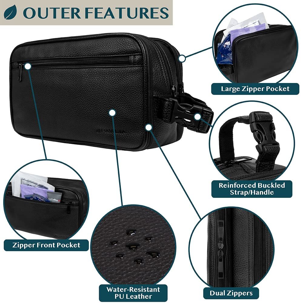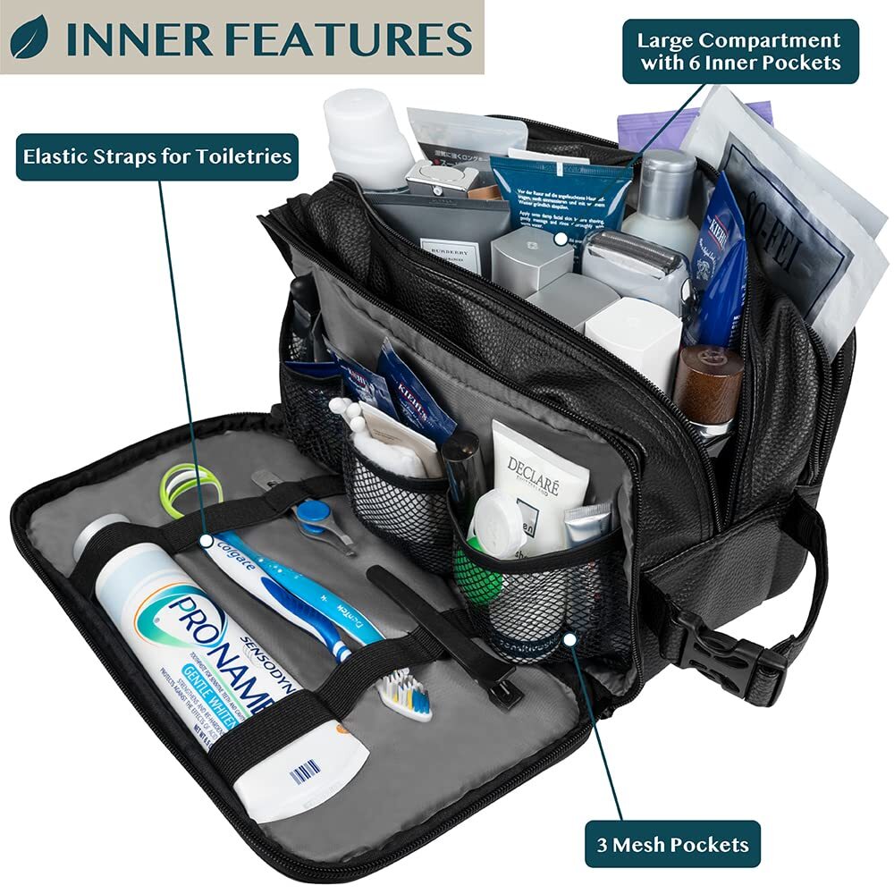 We offer Free Shipping on all order!! Welcome to my stores, The Smart of your choice and satisfaction guarantee. Toiletry Bag for Men, Travel Toiletries Bag | Water-resistant Dopp Kit, PU Leather Shaving Pouch Organizer for Accessories, Cosmetic, Hygiene, Grooming Essentials (XL, Black) Product Description MENS TOILETRY BAG: This functional PU leather toiletry travel bag has a large compartment and side pockets with additional pockets to hold all your toiletry, shaving, and grooming accessories. Equipped with elastic bands and additional mesh pockets to keep your hygiene items secured while traveling, weekend trip at hotel, or at home, this cosmetic make up case will help you stay organized. LARGE OPENING TOILETRIES TRAVEL BAG: This toiletry bag organizer has wide zipper design that allows for easy access to the large main compartment. With one simple pull on the handle, you can easily access key accessories such as shaving kit, tooth brush, and shampoo. This toiletry travel bag has the convenient design that helps you stay organized and makes this travel bag case an essentials during any traveling, flights, hotel stay, and weekend vacation. WATER RESISTANT TOILETRY BAG DOPP KIT: This toiletry case kit is made from high density PU leather with added side padding for durability and extra protection to keep your toiletries safe and protected during travel. The lining is water-resistant to prevent liquid splashes from entering the bag or luggage. The toiletry bag also offers excellent wet/dry separation so you can keep wet accessories in a separate compartment from dry toiletries during camping, road trips, weekenders. TRAVEL ESSENTIALS FOR MEN: The handle has a clip-on buckle to easily attach any bathroom bars and hangers so you can easily access this travel organizer in hotel rooms, bathroom, and showers. Its compact design means the toiletry bag is easy to pack and fits well in luggage and backpacks. This makes a great gift for father, men, boyfriend, uncle, husband, groomsmen and is especially appropriate for fathers day, Christmas, Birthday and those who love to travel. LARGE CAPACITY TOILETRY TRAVELING BAG: Measures 10.5 x 5.5 x 6 inches (L x W x H), the toiletry bag is large and roomy with ample room to store all essentials, accessories and toiletries during travel or home use. Easily fits all shaving kits, toothpastes, showering bathroom tools in this bag. Simply wipe clean with a damp cloth. Payment Policy - Payment managed by eBay. Shipping Policy - We do not ship to a different address. we will ship to the address you provide on the ebay only. Please check your address before purchase. - Items are dispatched within 24 hours (except weekends and holidays) and shipped from US. - It should take 3-5 business days for the product to reach your destination (Saturday and Sunday excluded). - We use a selection of shipping services such as UPS, FedEx, USPS etc. - We ship only to the 48 contiguous states of America. We do not ship to Hawaii, Porto Rico, Alaska, US Protectorates, APO/FPO addresses and PO Boxes. Local pickups are not offered. - If it takes any longer than that, please do not hesitate to contact us to resolve the issues. Returns Policy - This product comes with 30-Days Money Back Guarantee. - If you receive an item and it doesn't work properly or you don't like it because of any reason at all, - We have a 100% refund/return policy. We will ship you a new item or refund your money for the full sale amount. - For all returned products, buyers MUST contact us for the returning address.
