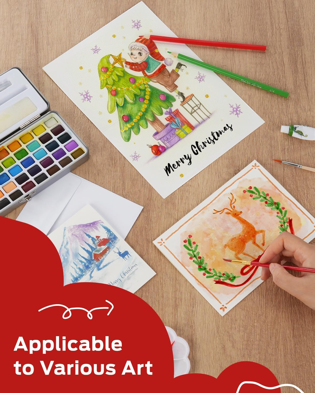 Watercolor Cards and Envelopes Set - 50 Folded 5X7 Inch Blank Heavyweight Paper