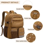 Multi-Pockets Backpack Weight: 1.56lb Dimension: 17.3×12.4×6.7 in Material: water resistant polyester Construction: 1 large zipper main pocket with 1 Laptop Compartment & 2 small open pockets 1 large sub zipper pocket with many organization pockets 5 zipper pocket in the front 2 Mesh side pocket Description: The multi front pocket fits for your keys, ID cards, wallet, power bank, etc. The side mesh pockets is perfect for folding umbrella and water bottle. The large sub zippered pocketcan hold magazines, A4 documents, pen, power bank etc. The Large main room can hold cloths, books, laptop, textbook and so on. The stylish backpack is great for everyone, it is suitable for travel, outdoor, sports, work, shopping and so on. Package Includes: 1 x Backpack [Durable & Lightweight] - The big backpack is made of water resistant 900D polyester fabric, it is durable and lightweigt, and the weight is only 1.56lb. [Large Capacity] - Size: 12.4×6.7×17.3 inches, it is large enough to carry everything you need. The main room contain 15.6 inch laptop compartment can hold textbook, tablet, chargers, power bank and clothes. [Multi Pockets] - The multi front pocket allows you to put your small items in an organized manner. Side pockets for water bottle or umbrella. Large middle sub pocket for magazines, A4 documents, etc. [Comfortable] - The S Shape shoulder starp is adjustable, you can adjust the lenth that suits yourselves, and luggage strap allows backpack fit on luggage/suitcase, slide over the luggage upright handle tube for easier carrying. [Multi Usage] - The casul daypack is unisex and suitable for various activities, including travel, college, work, outdoor activities, and daily use, etc.