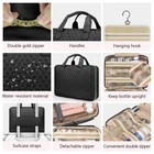 Unique Travel Essential for Women: Toiletries and makeup can be separated and stored, meets different carrying needs Easy to Carry Airplane Travel Essentials: it will not take up a lot of space in your suitcase. Suitcase strap fasten to luggage can retain more luggage space Full Size Travel Toiletry Bag: Sized 12.5 in x 9 in x 4.2 in. Elastic straps keep bottles upright to prevent leaks or spillage. Double zippers support quick access to travel size toiletries High-Quality Travel Makeup Bag: Surface material is waterproof polyester-peach-skin, easily clean it out with a wipe. gold zipper works smoothly. 360° hook save counter space Perfect Birthday Gifts for Women: Awesome travel bag for women who like separate travel essentials by category