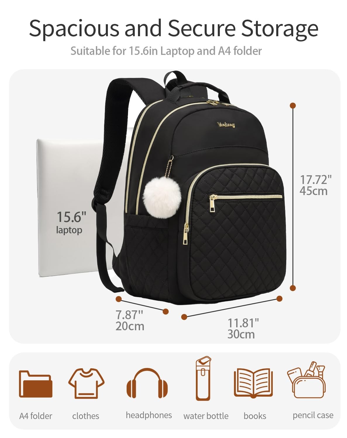 The water-resistant backpack offers a independent padded laptop compartment for computer storage and a lots zipper pockets to keep valuables secure. Perfect for students, travelers, commuters, and adventurers alike, this daypack combines practical features with a sleek design to meet all your daily needs. The stylish quilted and bright colors make the backpack trendy and functional. Generous Main Compartment: Ideal for carrying school essentials or daily essentials, keeping everything organized and easily accessible. Dual Water Bottle Pockets: Stay hydrated on the go with convenient dual side water bottle pockets. Whether you're headed to class or exploring the outdoors, you'll have easy access to your drink. Enhanced Comfort and Carrying Options: Padded shoulder straps make for comfortable carrying, whether you're using it as a school backpack or simply an everyday back pack. The long tote handle provides additional carrying flexibility. Versatile Attachment Features: With charging hole for convenient to charge your phone while walking, while the zipper pocket on the back enable storage valuables. The bookbags combines functionality with style, making it the perfect companion for work or any adventure. A Lots of Useful Pockets: Featuring a separate padded laptop compartment that holds and protects a 16 / 17 inch laptop, ensuring your tech stays safe on the go. The large main compartment is roomy for daily necessities, such as folders, text books, lunch box and electronic. Quick access front pockets are perfect for keeping all of your smaller items secure. On the outside, it has two water bottle pockets and a back anti-theft pocket for secure storage Durable Material & Solid: versatile backpack are made with robust nylon fabric, lining, zippers & straps in colors & designs, this adult backpack ensures longevity and resistance to daily wear and tear. Our bookbags are water-repellent and easy to clean, making it an ideal companion for your school or urban commute Hiddedn Charging Hole: Design with charging hole. Offering you a more convenient way to charge your phone while walking. You can charge the phone via the side pocket's hole so that you don't need to take the portable charger all the time. Just keep your phone powered up on the go. Please noted that the backpack can not power itself, charging hole only offers an easy access to charge Travel Friendly: The luggage strap allows backpack fit on luggage/suitcases by sliding over the upright handle tube for easier carrying. It has padded s-shaped mesh and padded shoulder straps for shoulder comfort. Top handles allow for easy grabbing Versatile and Multi-Functional: Featuring a practical silhouette and modern style that always looks amazing. It would be a travel backpack, Laptop backpack, work backpack, college backpack, teacher backpack, nurse bag, women backpack purse and student school backpack.