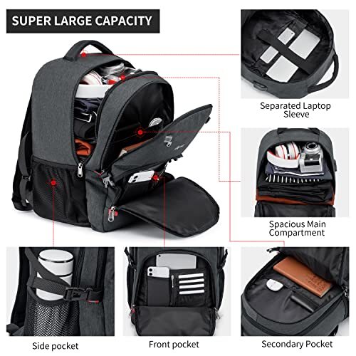 Return Policy Fast Delivery Trusted seller Backpack,Waterproof Large 17in Laptop Backpack for Trip School Work Bookbag Computer Rucksack with USB Charging Port,Water Resistant Sturdy Backpack for Men Women,Grey Product Description LARGE CAPACITY: This laptop backpack owns 20+ Independent pockets for large storage and organization for small items. 3 spacious main multi compartments with many hidden pockets can accommodate lots of stuffs like college supplies, travel accessories, clothes, stationery, notebook, Side deep ZIPPER POCKET for easy access essentials, Side elastic net pockets conveniently hold travel gear umbrellas or water bottles.Ideal book bag backpack for high school /college students perfectly. USB CHARGING PORT & NIGHT LIGHT REFLECTIVE - With built in USB charger outside and built in charging cable inside,this usb backpack offers you a more convenient way to charge your phone while walking. Please noted that this backpack doesn't include the power bank itself, usb charging port only offers an easy access to charge.NIGHT LIGHT REFLECTIVE design on the front of the backpack will keep all the users safe when use the backpack in the night or dark area. Versatile: Travel laptop backpack has unlimited possibilities. Headphones hole design for listening music help you relax yourself while travelling. Can be served as daypack, computer backpack, laptop rucksack, college or large school backpack bag, professional trip backpack for laptop or notebook, good for outdoor hiking, casual travel, campus, business for men, women, teens, girls, boys,adults and unisex.Ideal gift for dad/mother/teacher as birthday gift, for friend as friendship gift. BREATHABLE & COMFORTABLE:Padded and breathable mesh back panel of this computer rucksack design help for the air convection, ventilation and heat elimination. Comfortable wide breathable mesh shoulder straps with plentiful sponge pad help relieve the stress from your shoulder. Both sides of the shoulder strap with lanyard design, can hang sunglasses and other small pendants.Premium bookbags for men also school backpack for teen boys. And it is a Ideal gifts for men women. DIMENSION & DURABLE MATERIAL - Size of extra large college backpack: 12.6 *7.8*19.6(inches), Capacity:45L,separate padded laptop compartment fits most 13, 14, 15, 15.6, 16, 17, and up to 17.3 inch laptop/Ipad/Computer.The business computer backpack made from high quality polyester fabric shockproof with high density nylon lining for better TEAR & WATER RESISTANT and heavy duty backpack.Age:over 6 years old. Shipping Returns Payment Shipping Shipping is FREE to all addresses other than APO/PO boxes in the lower 48 states. All our stock ships from US-based warehouses. Shipped via USPS or UPS (depending on location and package weight) Unless stated otherwise, all orders will ship within 24-72 hours of your payment being processed. Check our feedback to see the great reviews of FAST shipping we offer. Returns Seller does not accept returns Payment We currently accept payment via eBay managed payments only. Once payment is cleared, we will dispatch your shipment within 1-3 business days. Please refer to the "Shipping" tab for more information regarding shipping speed to your destination.