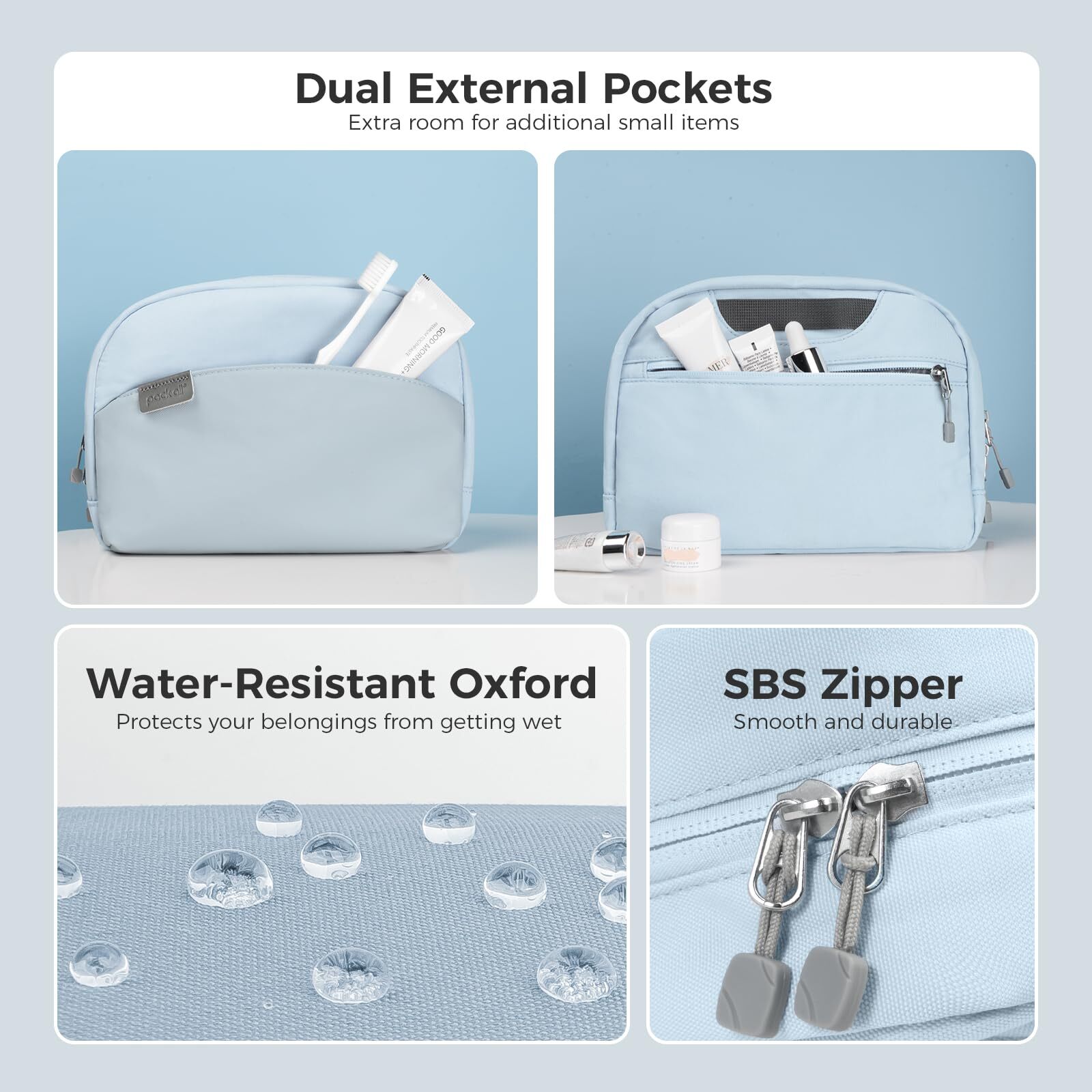 pack all Travel Toiletry Bag, Multi-Compartment Cosmetic Bag, Water-Resistant Makeup Bag for Toiletries, Accessories (Glacier Blue) Premium Material: Crafted from thickened, durable 450D Oxford cloth, offering water resistance and excellent shockproof protection for your items inside Large Opening for Easy Access: The extended zipper allows you to fully open the bag, providing easy access to your toiletries, cosmetics, and other essentials at a glance—no more digging through your bag Stylish Design with Large Capacity: Dimensions: 10.43"x7.1"x3.15", offering ample storage for toiletries, makeup, jewelry, small electronics, and more. Features a chic two-tone quilted design, available in 3 colors Multiple Compartments for Organized Storage: The interior features 9 divided sections for better organization, while 2 exterior pockets provide extra space for small essentials, making it convenient to grab items without opening the main compartment Versatile Use: This toiletry bag is perfect for travel, business trips, and outdoor activities. It also makes a great gift for Christmas, birthdays, or as a thoughtful present for friends, family, or yourself SHIPPING Domestic Buyers - We have confidence in our products, but if you are not fully satisfied please contact us within 30 days of purchase and you will get full refund. - We ship within 3 business days of payment, usually sooner - We offer FREE shipping on all orders! - We only ship to the lower 48 states, no APO/FPO addresses or PO Boxes allowed International buyers – please note: Import duties, taxes, and charges aren't included in the item price or postage cost. These charges are the buyer's responsibility. - Please check with your country's customs office to determine what these additional costs will be prior to bidding or buying. * Order Cancellation Policy ** You can return a product for up to 30 days from the date you purchased it. 1. The seller reserves the right to cancel the special case only due to eBay cancellation fee. 2. The decision of seller is the final. 3. The seller will respond to the cancellation request within 2 business days. Please wait for the result of cancellation. 4. In case the cancellation is not completed by some reasons, the buyer can follow the options below to get the refund. 4.1 The buyer can reject the item when it arrives. 4.2 The buyer can send the item back to the seller within 30 days If the buyer receives item (USA Shipment ONLY). The seller will provide the FREE return label to the buyer when the buyer opens " Return Item" case on eBay by using the reason as "Change my mind" ONLY. 5. When buyer has placed the order. The order will be processed and completed by automatic warehouse system within 5 minutes. In case that buyer sends the cancellation request after 5 minutes of placing the order, the request will be rejected. **Sending direct message to cancel the order is not allowed for every case.* Return Policy For the return case - If buyer would like to return the items for refund or replacement, please CONTACT SELLER to receive the free return label from seller. The refund or replacement will be processed with the tracking number of return label which is provided by seller only. The other ways of return which are not approved by seller will not be processed for the refund or replacement.
