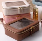 Toiletry bag waterproof cosmetic organizer with handle large opening for.... Product detailsAbout this item About this item Convenient for lots of occasions, outdoor activities, gym shower, getaway trip, long journey and overnight stay. It is best to use it indoors, In summer, don't leave your bag in the car and expose it to the sun.Measurements: Length 8 inches .width 6 inches .depth 2.5 inches approx. Can be used for professional and personal use.Constructed of transparent, simple to clean, PVC material.PU leather. Made of PU leather material and nylon lining. It is durable, waterproof, scratch-resistant, anti-collision, The front is made of transparent material, you can clearly see what is stored inside Clear PVC window ,Transparent design can clear see you beauty cosmetics inside,2 round zipper easy to access,durable golden zipper.