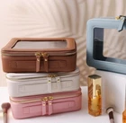 Toiletry bag waterproof cosmetic organizer with handle large opening for.... Product detailsAbout this item About this item Convenient for lots of occasions, outdoor activities, gym shower, getaway trip, long journey and overnight stay. It is best to use it indoors, In summer, don't leave your bag in the car and expose it to the sun.Measurements: Length 8 inches .width 6 inches .depth 2.5 inches approx. Can be used for professional and personal use.Constructed of transparent, simple to clean, PVC material.PU leather. Made of PU leather material and nylon lining. It is durable, waterproof, scratch-resistant, anti-collision, The front is made of transparent material, you can clearly see what is stored inside Clear PVC window ,Transparent design can clear see you beauty cosmetics inside,2 round zipper easy to access,durable golden zipper.