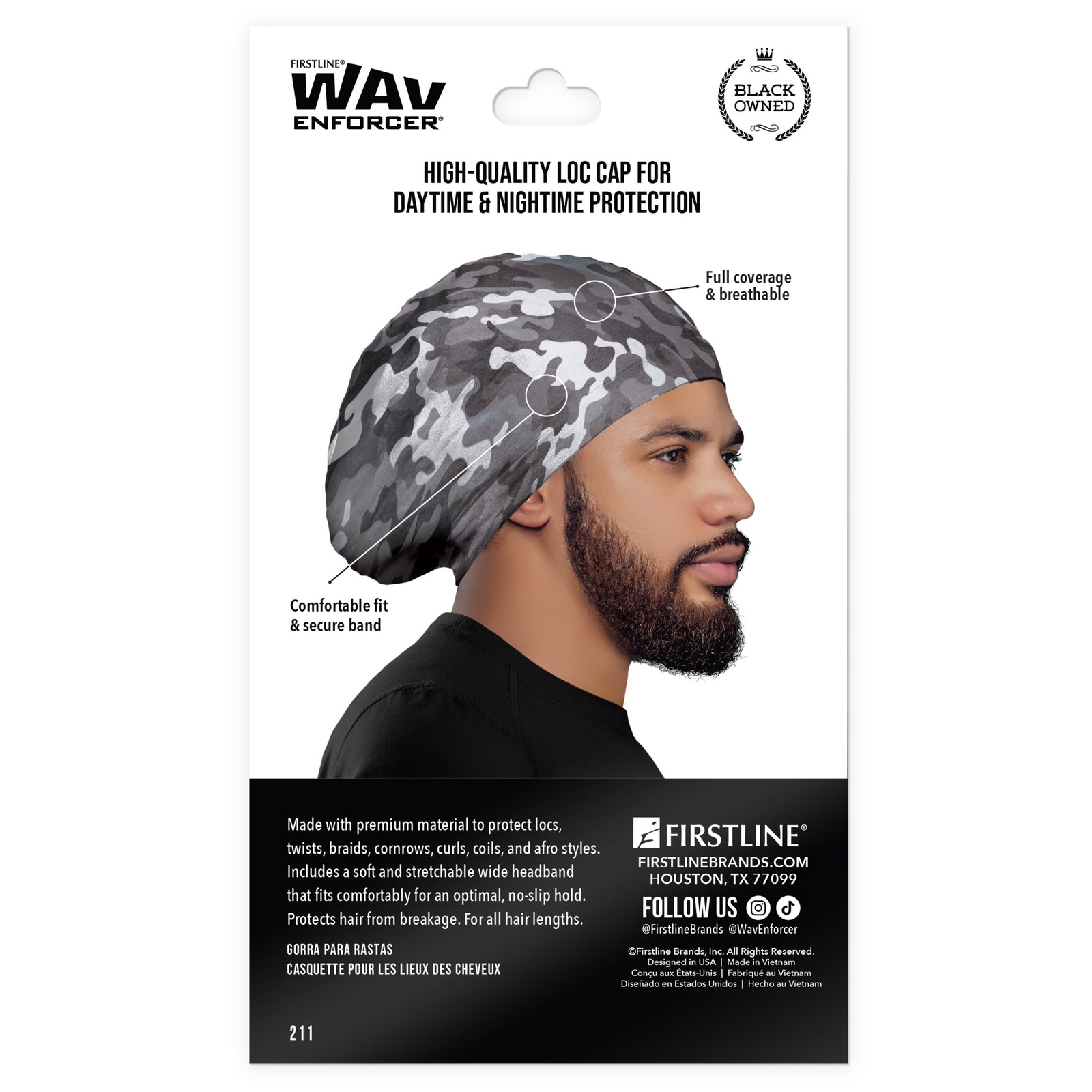 The WavEnforcer Loc is a four-way stretch that covers and protects locs from breakage and lint. The stay-put edge band keeps the Loc secure and in place. Covers most locs. Made in Vietnam. Fabric Content: 88% Polyester, 12% Spandex. Comfortably fits over most loc sizes and lengths Four-way stretch fabric A versatile accessory for anyone with locs seeking additional protection without compromising on comfort or style