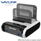 Black-without SD Reader Wavlink Dual Bay External Hard Drive Docking Station, USB 3.0 to SATA I/II/III for 2.5 or 3.5in HDD, SSD with Offline Clone Function, supports UASP SATA 5Gbps[ 2x16TB Support] Dual-bay Docking Station: The Wavlink two-slot hard drive docking station supports all 2.5''/ 3.5'' SATA I/ II/ III HDD SSD (up to 2x 16TB), a perfect solution for data backup and transferring files. The unique bezel design offers stable performance and better protection for your hard drives. Offline Clone Function: Offline data copy between two hard drives with no computer involved, totally a competent assistant for data backup. Press the OTB button for about 3 seconds and short-click it once again to start the process. Tips: please make sure the capacity of target disk' s is larger/equal than source disk's. USB 3.0 Superspeed with UASP: With standard USB 3.0 and SATA III connectors' ready, the data transfer rates up to 5 Gbps, 10x faster than USB 2.0. UASP supported allows a 20% faster transfer speed over conventional USB 3.0, transferring 1GB files only takes 3 seconds, backward compatible with USB 2.0/1.1. Easy to Use: Back-up files and expand storage with convenient access. Tool-free, no driver is needed. Hot-swappable, plug and play! Compatible with Windows 7/8/10/11, Mac 10.2 or latest (Do not support M1-based Mac), Chrome OS, Linux, Android. {Note: Your phone should support the OTG function.} Package Includes: 1x usb 3.0 dual bay hard drive docking station, 1x usb 3.0 type-b to a cable, 1x usb 3.0 type-a to c adapter, 1x 12v/3a power adapter, 1x user manual, 2x bezels, several screws. 1 Year worry-free warranty( extra 6 months for registered members) and life-long technical support. Please feel free to contact us if you have any questions. WAVLINK USB 3.0 to SATA I/II/III Dual Bay External Hard Drive Docking Station for 2.5 / 3.5in HDD SSD, a Perfect Data Access & Hard Drive Clone Tool Overview Wavlink SATA Hard Drive Cloner support data copy and clone between any two 2.5"and 3.5" SATA I/II/III HDD and SSD up to 16TB capacity. Moreover, it adopts USB3.0 (SuperSpeed) with data transfer rate up to 5Gbps and UASP protocol. It is also backward compatible USB2.0/1.1. This excellent transmission performance and compatibility is convenient for data exchange and perfectly suitable for people who need to process clone data regularly, such as film and television production, backup & processing IT data, schools batch processing data, etc. SATA Interface Only: Not compatible with HDD/SSD features IDE interface. Please confirm your hard drive type before purchasing. For Your Smartphones: Compatible with your USB-C Android phones, data transfer by OTG. (The USB-A to USB-C converter is included) Auto-Sleep Function: After finishing cloning, product will go to sleep mode if there were no operations in about 12mins and HDDs stop running. Sufficient Power Supply: A highly efficient 12V/3A power supply provides a stable and reliable energy supply which can easily drive large capacity hard drives. Before you clone, please noted: ①.The target drive has to be at least equal or larger in capacity than the source drive. ②. Please confirm your source drive and target drive both can work properly, and target drive have no data. If you have existing data on the target drive, the cloning process will eliminate your target drive's data. Because the target drive will be cloned to be the same as the source drive, partition, format and data are the same too. ③.To avoid data loss, do not unplug drives when one drive is working in the docking station. Please power off the dock before removing. ④. Make sure there is no connection to the USB port. After transferring data on computer, please noted: 1). Before the removal, please stop all data access and transfer to the device. 2). Never remove your hard drive(s) or insert a new one while the hard drive is in use. Otherwise, you may corrupt the data on the hard drive(s) or damage the hard drive(s), docking station, or computer. Tips: ●Do not support M1 based Mac. ●One-Touch Backup function for Windows PC ONLY. ●One button to offline clone, does not need to connect to the computer. ●Please make sure the actual capacity of the Target disk is higher than Source disk (Target≥Source). ●Making sure your smartphone supports OTG function or data will not be transmitted. ●A brand-new hard drive should be formatted and partitioned in Disk Management/Disk Utility before use. ●To avoid data loss, please do not try to insert or withdraw HDD or SSD when another hard drive running. ●Please backup files in the target hard drive before cloning. Any files in the target hard drive will be overwritten when offline cloning occurs. ●Some disks might need more wattage than normal disk to start up, please connect the 12V power adapter to ensure a stable power supply for transmission. Specification Compatible HDD: 2.5/3.5 inch Max HDD Capacity: 2x16TB Maximum data transfer rates: 5Gbps Material: Plastic ABS and PC Weight (with 2 bezels): 366g/12.9oz/0.8lbs Item Dimensions: 14.2 x 12 x 4.5cm/ 5.6 x 4.7 x 1.8 in USB-B to USB-A Cable Length: 2.3ft /27.56inch /70cm Power Cable: 120cm/47.2in/3.93ft Black-with SD Reader Wavlink USB 3.0 to SATA Dual Bay External Hard Drive Docking Station for 2.5” & 3.5” SATA I/II/III HDD/SSD with Offline Clone and Fast Charging Hub, Card Reader [ Supports UASP & up to 2 x 16TB] Features: Dual Bay Docking Station: Allows an easily insertion into two 2.5” & 3.5” SATA I II III HDD SSD, supports up to 2x 16TB hard drives. Multi-Function: Offline clone, storage, USB hub, 2-port fast charging. Faster Transfer: Improved performance with USAP and SATA III(up to 6Gbps), the faster transfers reach up to 70% faster read speeds and 40% faster write speeds. Convenient operation: LED indicators make HDD Access, Power status, clone process clearly at a glance. Plug & Play: No reboot and additional driver needed, hot-swapping, easy and quick Tool-F
