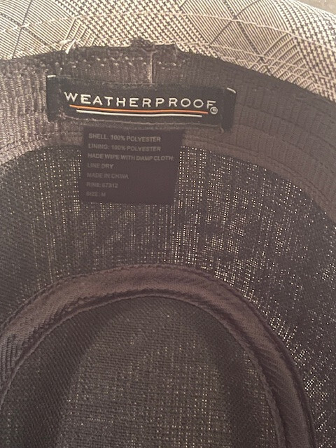 New with tags Dress hat Weatherproof 1 3/4 inch brim fedora, grey/black plaid lightweight fabric grosgrain inside sweatband; self outside band Size medium is hat size 7 1/8, 58 cm material is a woven, 100% polyester shipped in a box