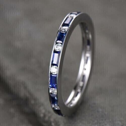 Elevate your special moments with the timeless elegance of this Wedding Band, featuring a stunning Baguette Cut Natural Blue Sapphire as the centerpiece. Surrounded by a halo of sparkling diamonds, the sapphire's deep blue hue is accentuated by the refined prong setting in 14k white gold. The ring's design is a perfect testament to the beauty and precision of Shramz_nj's craftsmanship, offering excellence in both cut and clarity grades. Whether for a wedding or a significant anniversary, this ring is tailored to cherish forever. Personalization options ensure a unique fit for your unique story, while the nickel-free metal promises comfort for daily wear. GDGL certified, the ring assures authenticity and quality, ensuring that every detail, from the alluring sapphire to the delicate diamond accents, meets the highest standards.