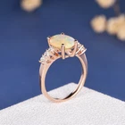 Wedding Band Engagement Ring 14k Rose Gold Opalite Diamond Gemstone Jewelry