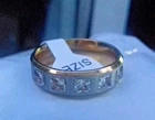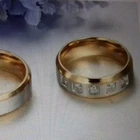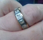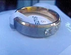 Titanium Exquisite Ladies Wedding Band Ring Size 8(P) Brand New A Beautiful, Titanium & Gold Plated Band Ring with inlayed Zirconia Gems Gold plated set on a Titanium Brushed Rim with 5 little Gems Would be great for the one you LOVE For Wedding, or Anniversary, or any special Occasions. Picture does not do it justice 100% GENUINE WILL COME IN A PRESENTATION BOX Have a matching Mens wedding band, see my other listings.