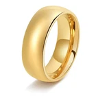 This tungsten carbide band ring is constructed from tungsten metal with an 18K Gold Tone plated surface and a smooth polished dome profile. The ring is available in multiple widths including approximately 4 mm, 6 mm, and 8 mm, formed in a fixed circular structure with rounded interior edges for comfort fit wear. The design contains no stone settings or decorative inlays, maintaining a solid continuous band appearance. Designed for general wear, the ring is categorized as a fashion band style ring suitable for anniversary or coordinated accessory use as fashion jewelry.