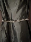 The product is a wedding belt adorned with crystal rhinestones, designed to be worn as a bridal accessory. It can be used to add a touch of elegance and sparkle to a wedding or formal occasion outfit. Rhinestones extend 17.5”